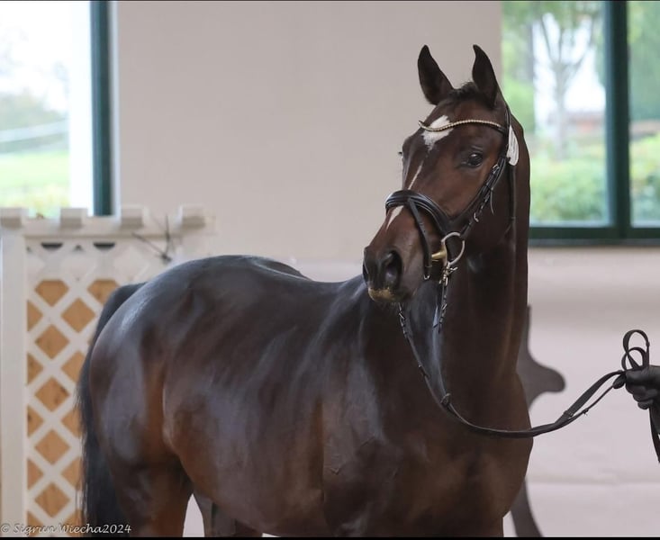 Aristomacho is a 4-year-old Trakehner gelding. He is absolutely well-behaved in handling, eager to learn, very affectionate, and people-oriented. He is easy to manage with other horses and suitable for herd life. Lunging, work on the treadmill, leading, and free jumping are no problem for him. He is already ridden and demonstrates a remarkable willingness to learn and a calm demeanor. Thanks to his excellent basic gaits and outstanding jumping ability, Aristomacho is suitable for all disciplines in equestrian sport. Additional videos available upon request.