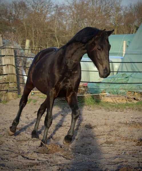 Giovane discendente di 2 anni dell'E.H. Helium, attualmente in allevamento ben curato sull'incantevole isola di Föhr. Già castrato, questo giovane ha un vero carattere d'oro ed è stato valutato molto bene come puledro con un punteggio totale di 56,5 punti, con particolare attenzione alle andature di base. Data l'età, è logicamente in pieno sviluppo e non è stato sfruttato, viene offerto direttamente dall'allevatore, semplice e maneggevole nella gestione quotidiana. Il padre, E.H. Helium, attualmente di successo nella S-Dressage con la sua istruttrice fissa Natalie Soujon, riesce regolarmente a attirare l'attenzione con i suoi discendenti molto ben addestrabili, che hanno trovato la loro vocazione nel mondo del dressage. Il padre materno Elvis, non solo per la sua colorazione come Pinto un vero colpo d'occhio, unisce il pedigree materno con il stallone di Grand Prix Saint Cloud, conferendo a questa linea un tocco di dressage speciale. Chi desidera assicurarsi un cavallo sportivo per il futuro dovrebbe prestare particolare attenzione a questa offerta.