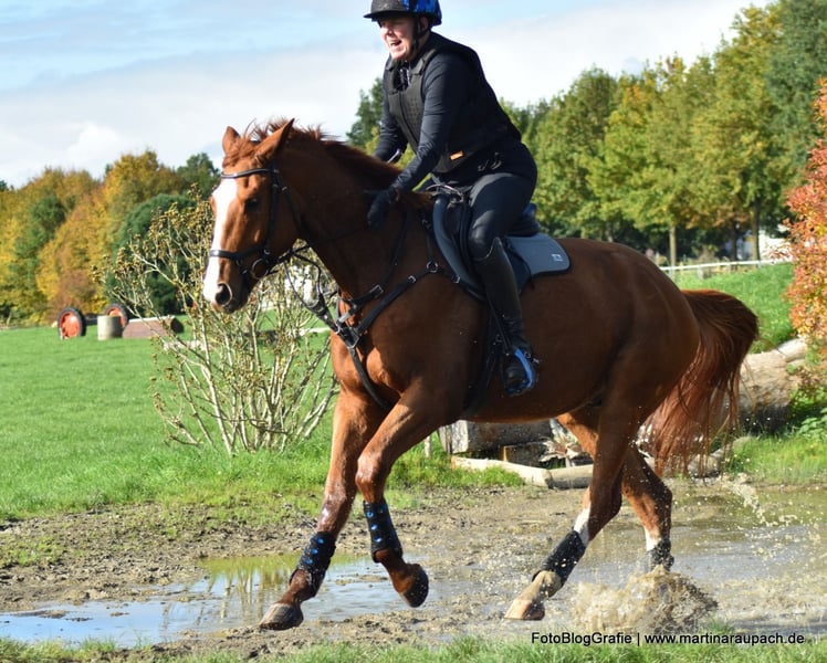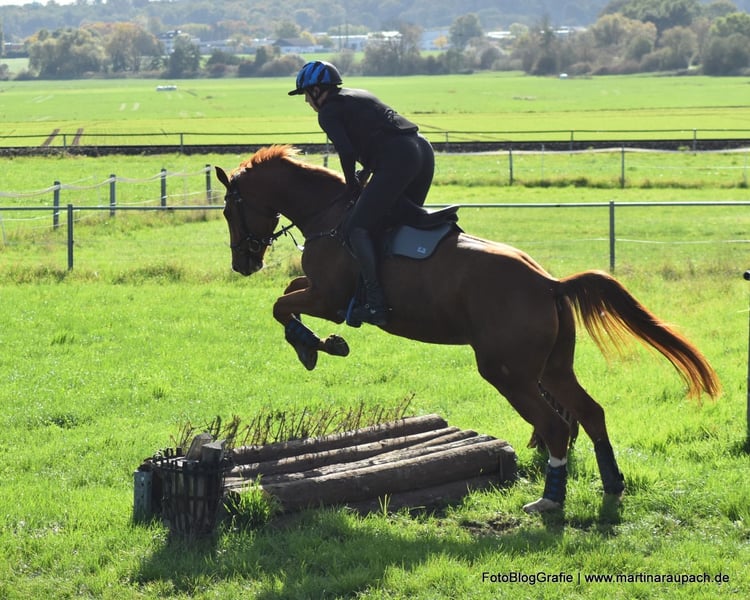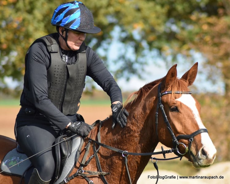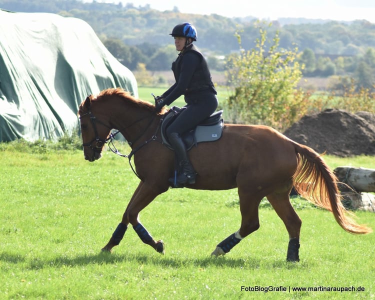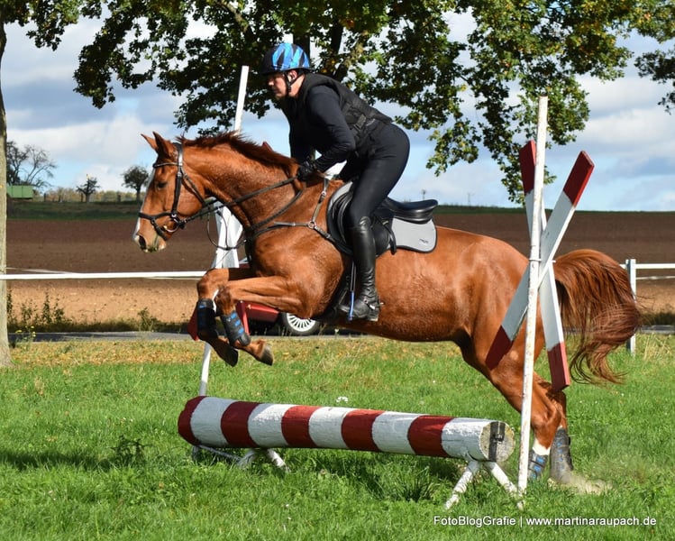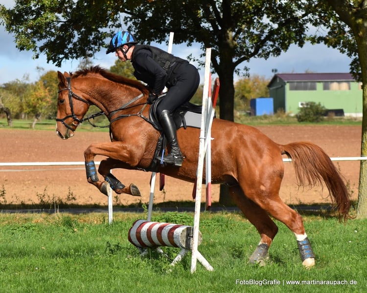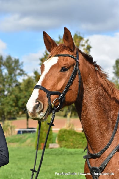 Bel Viaggio (Italian for "beautiful journey") is affectionately nicknamed TUI and is, above all other qualities, a super friendly and people-oriented horse. When a person enters the paddock, it doesn't take long for TUI to come over for some affection. So, attention: the future carrot giver should enjoy this! Due to his XXL size, we have started his training very slowly and gently. Short "work sessions," trail rides, and now in late summer, the first small jumps under the rider. He has also already overcome a few solid jumps (small logs). TUI is always willing, has a great temperament, and brings joy to training. He tends to be on the calmer side; in the video, you can see him "startle" when a car drives by above the riding arena – it doesn't really bother him. He still wants to grow into his body and will surely gain more strength before he fully taps into all his potential. He currently lives in a loose housing system with mixed group management and is barefoot. A setup with plenty of turnout is also desired for the future. His maternal half-brother BELUN by Nathan de la Tour AA was the best show jumping stallion at the licensing and is the current show jumping champion of the 5-year-old Trakehners. So, talent runs in TUI's blood, as his father was also the best show jumping stallion at the licensing. We are happy to send more photos and videos of TUI upon request via WhatsApp.