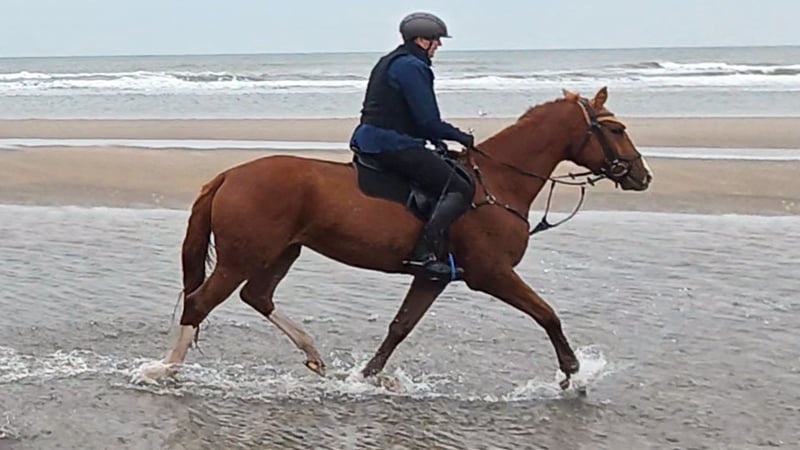 Bel Viaggio (ital. schöne Reise) hört bei uns auf den Spitzname TUI und ist vor allen anderen Qualitäten ein super freundliches und dem Menschen zugewandtes Pferd. Kommt ein Mensch aufs Paddock, dauert es nicht lange und TUI kommt schmusen. Also Achtung: Der oder die künftige Möhrchengeber/in sollte das mögen! Aufgrund seines XXL-Formates haben wir sehr langsam und schonend mit der Ausbildung begonnen. Kurze "Arbeitseinheiten", Ausritte ins Gelände und im Spätsommer auch die ersten kleinen Sprünge unter dem Reiter. TUI ist immer willig, hat ein super Nervenkostüm und macht Freude in der Ausbildung. Von der Tendenz gehört er eher zur ruhigeren Sorte und er will sicher noch weiter in seinen Körper wachsen / an Kraft hinzugewinnen, bevor er aus all seinen Möglichkeiten schöpfen wird. Wir haben ihn Anfang Oktober mit an die See genommen, leider war das Wetter sehr, sehr stürmisch, so dass das geplante Fotoshooting ausfallen musste. Aber ein paar Handy-Bilder gibt es dennoch. TUI ging brav ins Wasser, auch trab und Galopp funktionierte schon. Obwohl erst 4, ging er mutig vorweg. Wir zeigten ihn im Rahmen der Trakehner Sichtungsinitiative VS in Altenstadt und er machte einen sehr guten Job! Jeden Sprung beim ersten Anlauf, auch den Graben sprang er sofort. Andreas Ostholt empfahl so weiter zu machen. Für die Winterarbeit wurde frisches galoppieren im Gelände auf den Plan geschrieben. TUI wohnt aktuell in einem Laufstall in gemischter Gruppenhaltung und läuft barhuf. Eine Haltung mit viel Auslauf wird auch für die Zukunft gewünscht. Sein mütterlicher Halbbruder BELUN von Nathan de la Tour AA war bester Springhengst der Körung und ist aktueller Springchampion der 5 jährigen Trakehner. Das Talent liegt Tui also in der Wiege, denn auch sein Vater war ja bester Springhengst der Körung. Mehr Fotos und Videos von TUI senden wir gerne auf Anfrage per WhatsApp.