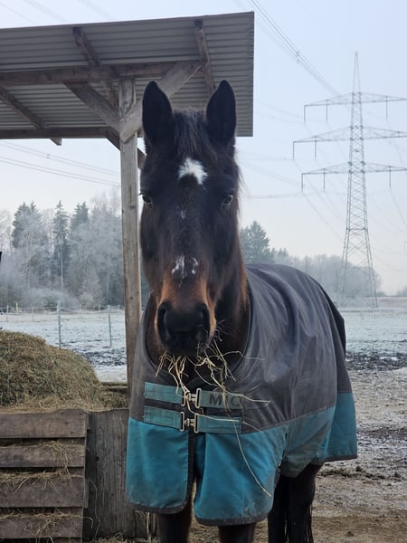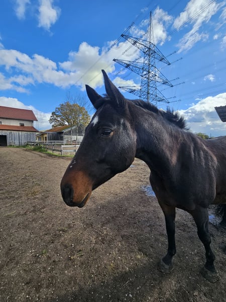 Isotop geb 03.2019 sucht ein neues Zuhause. Isotop von uns genannt Isi ist ein 6 jähriger Trakehner Wallach er ist Kopper und hat am Körper einige Sakroide. Im Sommer benötigt er eine Fliegenmaske und eine Fliegendecke da er ansonsten das Head Shaken anfängt wenn er von den Fliegen genervt ist. Anfang des Jahres hatte er ein Magengeschwür das wir behandelt haben. Isi ist ein sehr aufgeweckter und sensibler Junger Mann der es genießt wenn mit ihm Zeit verbracht wird. Er braucht Zeit und möchte dass man ihm die Welt ruhig erklärt. Isi hatte einen Unfall vor ein paar Jahren und dadurch eine lange Narbe am Hals. Diese stört Ihn aber nicht. Da das Leben nach seinen eigenen Regeln spielt und Dinge anders kommen als man es sich selber wünscht sucht er ein neues Zuhause. Isi kennt Sattel und Trense wie longieren, spazieren gehen, traktoren, kinder usw. Er ist ein spät Entwickler gewesen weshalb er noch nicht angeritten wurde. Er wird daher als Roh verkauft. Ich kann mir vorstellen wenn man mit ihm regelmäßig arbeitet und die Zeit hat, die mir leider fehlt, dass er mal ein super Reitpferd werden könnte. Isi wird nur in gute Hände abgegeben und auch nur in Offenstall Haltung! Er steht aktuell im Offenstall ist dort eher Rang hoch und bekommt dort 24 Stunden heu. Aktuell ist er eher eine kleine pummel fee da mir die Zeit fehlt mich um ihn zu kümmern. Beim Schmied ist er brav, hänger fahren findet er nur eher semi gut ist dabei aber nie böse sondern hat einfach keine lust darauf :) Ich wünsche mir für Ihn ein Zuhause bei dem er die Aufmerksamkeit bekommt die ich ihm leider nicht mehr geben kann. Ich habe keine genaue preisvorstellung mir ist wichtig dass die Chemie zwischen dem neuen Menschen und Ihm passt alles weitere ergibt sich dann. Es ist kein Notverkauf!