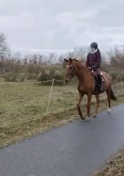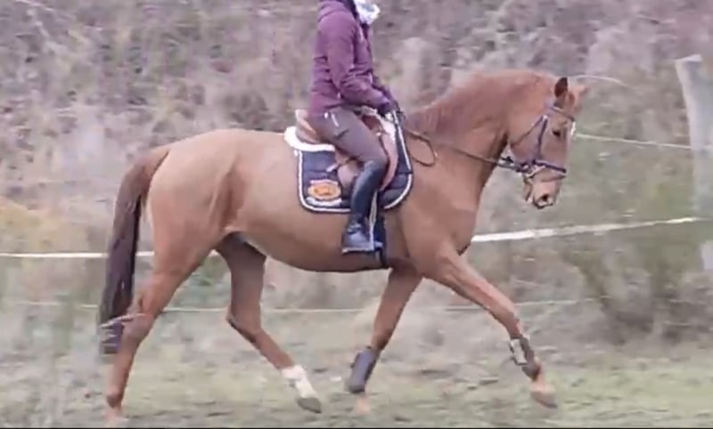 Dirigent is a 2017-born Trakehner chestnut gelding by Burma Gold xx x Der Dürer x Hertrug. The pedigree and all siblings from this line indicate a versatile aptitude. Dirigent convinces both in handling and riding with his balanced and cool character. In dressage work, he always wants to please his rider and cooperates willingly. Pole/jumping work is part of his training plan, so that he can easily jump a small course even with an inexperienced rider. In the field, Dirigent underlines his strong nerves on rides along the main road, for example. This makes him the perfect all-rounder.