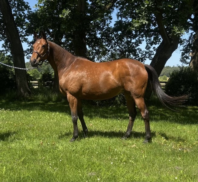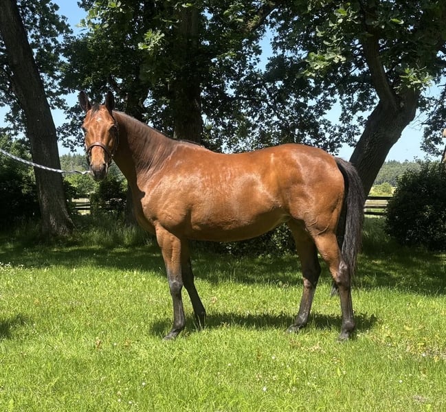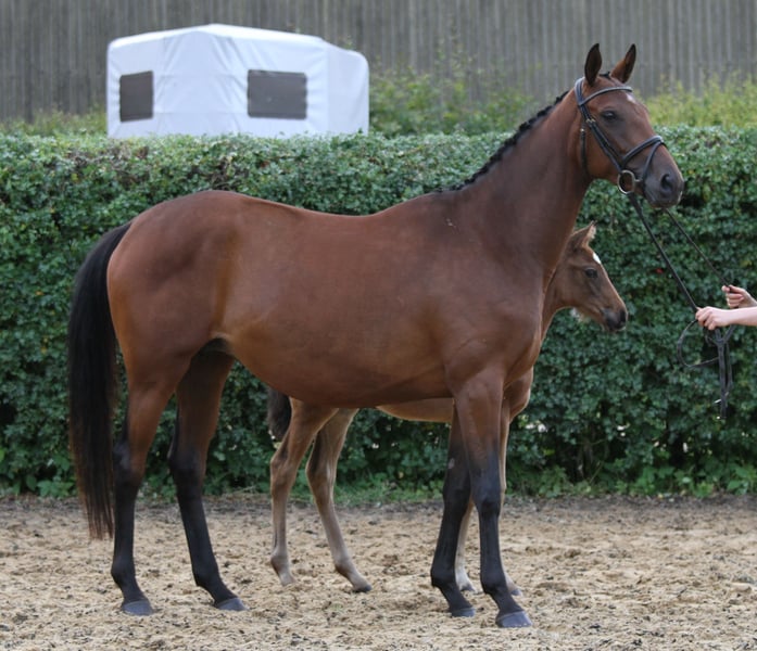 Stable, correct three-quarter blood mare. Premium candidate. 2 highly awarded foals in 2 breeding years. Wonderful to handle, very good mother mare. For sale due to breeding discontinuation.