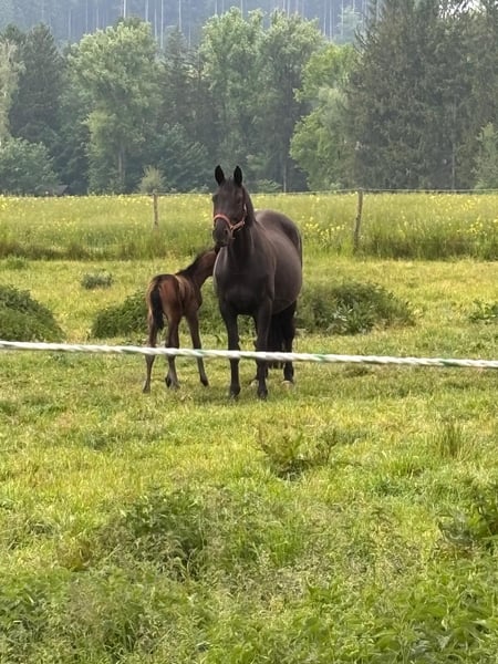 Zum Verkauf steht eine für 2026 tragende Zuchtstute. Tragend von Karl Lagerfeld V. Hofrat für 2026 Sie hat bei uns bislang top Fohlen gebracht, das Stutfohlen vom letzten Jahr, ebenfalls von Karl Lagerfeld kann hier besichtigt werden. Die Stute hat ein top Pedigree, V. Schwarzgold aus einer Mutter von Gribaldi x Biotop. Aller erste Sahne für die Zucht! Wegen Nachzucht und Bestandsreduzierung abzugeben. Anfragen bitte per WhatsApp/Telefonisch unter 0170-3427210