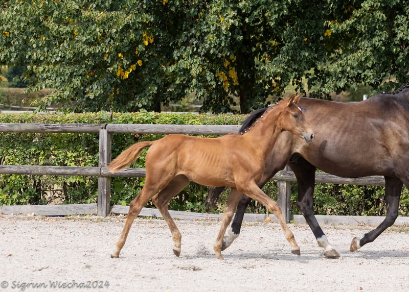 One of the few daughters of Painter's Maxim by natural jumping in this crop. The son of Phlox, who was so successful in advanced (S) level courses, also asserted himself on German soil with numerous placings in advanced eventing and show jumping competitions. Under Kai-Steffen Meier, he was also successful in international eventing: for example, 4th place at the 2016 World Championships for six-year-old eventing horses in Lion d' Angers/France and then successful in eventing competitions up to CCI***. His daughter is highly noble, enchanting in her femininity and moves as light as a feather, always in time and with an emphasis on self-carriage. On her dam's side, she comes from one of the most successful and highly respected performance dynasties in the breed, whose reputation and the successes of its individual members are closely linked to the unforgotten traditional breeder Hans-Otto Löwe. The double-award-winning dam won an Ic prize at the Trakehner National Mare Show in Neustadt/Dosse and produced two highly-awarded daughters, Antike by Horalas and Alma by Davidas, who, together with Amy Lu by Davidas, have been successful in jumping competitions in keeping with their age. The family of the advanced (S) level course specialists Altinus, Abahatschi, Allenstein, Altenbach TSF, the successful Always in Time in CCI**** competitions, the advanced (S) level dressage horses Alkaccini, Alpina and Athene. The young, promising sires Ataman and Alle Farben are also part of the family.