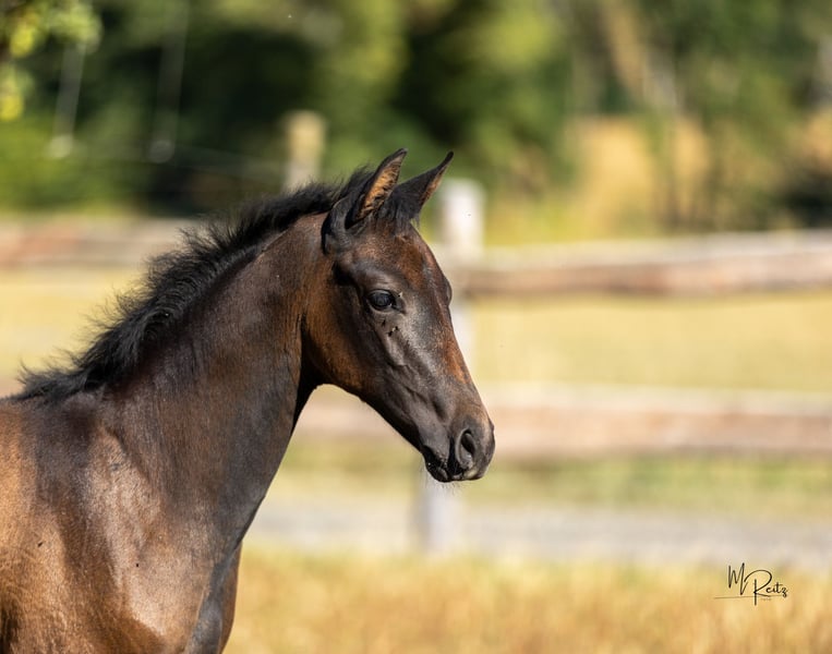 From a successful breeding farm comes a genetic rarity of the highest class. This excellently developed filly, with a clear type and a large frame complemented by plenty of leg, is destined—due to her athletic qualities—to create a new branch within this pedigree line, making her especially valuable. Her exemplary father, Göteborg, is not only outstanding in temperament but also the sole representative of the legendary Cancara's stallion line. The double-premium awarded dam, Hot Spirit, is by Grafenstolz and has achieved high placements in eventing competitions up to class L. She is the dam of two licensed stallions, three premium daughters, and three sport horses competing successfully up to M level. The highly awarded granddam, Hot Angel xx, is also the dam of the much-too-early deceased champion stallion Skatman (by Sixtus), who has made a significant name in Trakehner breeding and placed third at the Bundeschampionat for eventing horses.