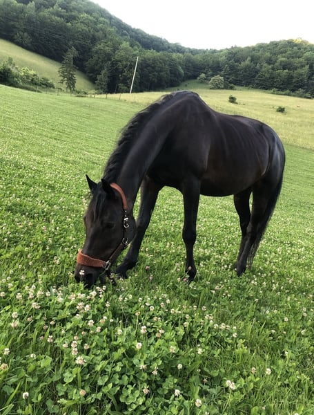 Trenne mich aus Privaten Gründen von meiner 20-jährigen Trakehner Stute. Arthrosen wurden vorne links festgestellt (bislang keine Schmerzmittel nötig) sie lahmt aufgrund dessen immer wieder mal. Es gibt gute und schlechte Tage. Etwas Schritt reiten stellte bis jetzt kein Problem dar und auch Bodenarbeit geht immer. Sie hat noch ordentlich Power und möchte Arbeiten bzw. Beschäftigt werden, ich werden dem zurzeit nicht gerecht. Sie ist soo eine brave Maus macht alles mit und ist sehr lernwillig. Reitplatz ist absolut kein Problem nur alleine ins Gelände ist ihr nicht ganz geheuer. Tagsüber Koppel bzw. Paddock und Nachts Box oder ein Offenstall mit einer kleinen eher Ruhigen Herde (vielleicht in ihrem Alter) wäre auch passend. Eventuell auch noch für Zucht. Sie hatte als 5-Jährige ein Fohlen. Würde mich sehr freuen wenn sich jemand findet der ihr die Zeit schenken kann die sie verdient.❤️ Kontaktaufnahme am besten über Whatsapp. Nur an Bestplatz! Kein Notverkauf!