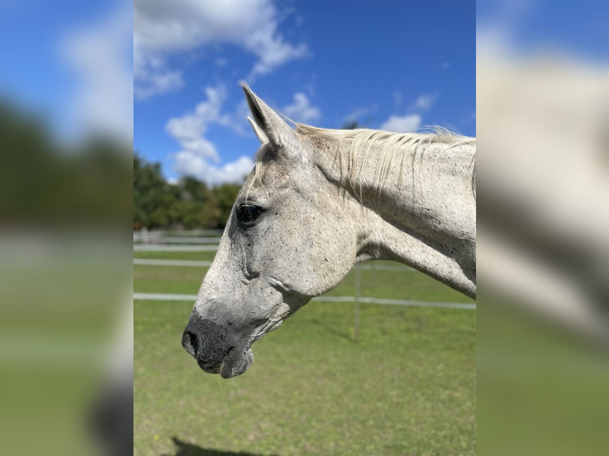 The 23-year-old grey mare is halter-trained, easy to handle for farrier and loading, and very well-balanced. She was removed from her original environment due to animal welfare measures. She suffers from a chronic respiratory condition, which makes sporting or breeding use incompatible. Currently, however, she is nearly symptom-free. She has also been used as a broodmare and has three plausible, well-documented offspring. It is likely that she was also ridden at some point, although this cannot be confirmed, and due to her respiratory condition and nutritional status, this has not been tested. She is currently recovering well and is lively. She has a gentle, lovable character and is very friendly and sociable with other horses. She comes from a herd kept in an open stable system. In her current care, she has been vaccinated against tetanus and dewormed. A dental check-up is recommended. We are looking for a loving home where she can spend her retirement after her recovery from her previous conditions.