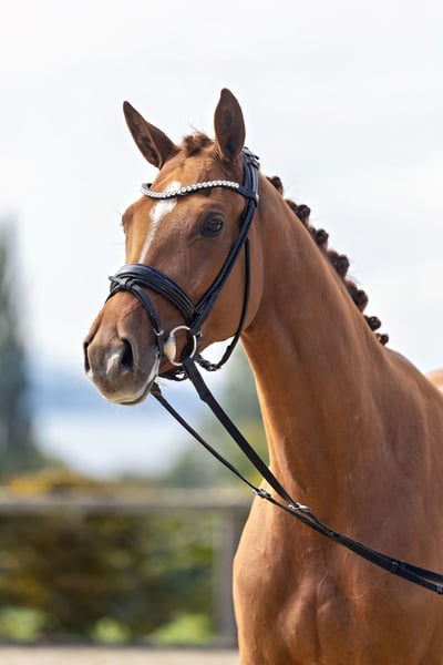 In traumschönem Stil, vornehm und bewegungsvirtuos tanzte Sonnenschein in souveräner Darstellung auf einen hochdotierten Prämienrang in der starken Konkurrenz der ZSE Bayern 2025. Die Vollschwester der Auktionselite Sonnenröschen (NMS ‘23/73) ist mit einer Topgenetik geschmückt, in der 2. Generation finden die prämierten Grand-Prix-Hengste Le Rouge und Lowelas (Kanada) zusammen. Dazu knüpft sie enge verwandtschaftliche Bande mit dem Bewegungswunder Sanderas (NMS ‘22/04) und den hochdekorierten Stuten Senorina und Sensburg. Aus einem vom besten Blut geprägten Zweig der berühmten Scherezad-Dynastie und nah verwandt mit dem im S-Parcours hart geprüften Vererber Schenkendorf (UK). Die Stute wird anlässlich des Trakehner Hengstmarktes am 28.112025 bei einer Auktion versteigert, alle Informationen finden Sie unter: https://bid.trakehner.auction/auctions