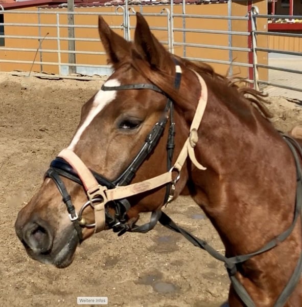 Hailey ist eine bildschöne noble Fuchs-Stute. Im Mai /. Juni 2024 wurde sie anlongiert und an den Sattel und Reiter gewöhnt. Danach kam sie wieder für 1 Jahr -da spät geboren- in den Stall und auf die Weide. Ab Juli 2025 wurde sie beim Bayerischen Zuchtverband in München-Riem angeritten. Impressionen vom Fremdreitertest in der Stutenleistungsprüfung (nach 7 Wochen anreiten!). Siehe Video! Stationsprüfungsbewertungen u.A. : Charakter 10,0; Temperament 9,0; Leistungsbereitschaft 9,5; Konstitution 9,0 Hailey ist rittig (und gut zu sitzen), umgänglich und brav. Gesundheitszustand = top fit. Röntgenbilder v. 26.8.’25: ohne Befund! Haileys Abstammung: Väterlicherseits geht sie zurück auf die Grand Prix Dressurpferde E.H. Imperio und E.H. Insterburg - die in 2025 höchst bewerteten Trakehner „Sterne“-Vererber – auf Platz 1 u. 2. Mütterlicherseits garantieren die Trakehner Hengste E.H. Monteverdi u. Ibikus sehr gute Reitpferdeeigenschaften. Haileys sehr gute GGA (siehe Video an der Longe) werden weiterhin im südlichen Bayern (nahe Holzkirchen) gefördert. Hier kann Hailey jederzeit unter dem Sattel ausprobiert werden. Bei Interesse bitte Kontakt und Terminabsprache mit der Reiter-und Ausbilderin Kathrin Reisinger aufnehmen. Handy-Nr: 0173 2732008.