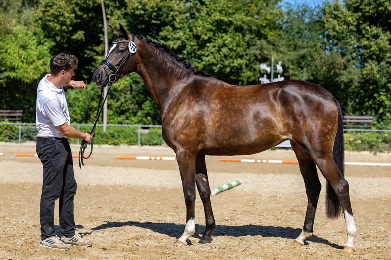 A truly spectacular appearance by one of the most prominent participants at the 2025 Trakehner Federal Mare Show, which promises to be full of highlights: the luxurious Bavarian ZSE-winning mare 2024, now a member of the reigning Federal Champion family and class winner. Pure luxury is also embodied by her full sisters: La Boum de Luxe, the current Bavarian ZSE-winning mare and vice annual champion mare, and above all, Luxusliebe II, whose impressive record in her young years includes titles such as ZSE champion mare, vice annual champion mare, vice Federal Champion, and Trakehner Dressage Horse Champion—an achievement that is unparalleled and hard to surpass. The mare will be auctioned during the Trakehner Stallion Market on November 28, 2025. All information can be found at: https://bid.trakehner.auction/auctions