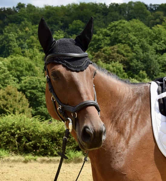 Donatella è una cavalla trakehner di colore baio, nata nel 2020 e alta attualmente circa 165 cm, figlia di Burma Gold xx x Cavallieri xx x Hohenstein. La sua ascendenza e tutti i fratelli di questa linea suggeriscono una versatilità di utilizzo. Attualmente, Donatella è in fase di addestramento delicato e versatile. Da sottolineare è la sua disponibilità al lavoro e la predisposizione al salto. Salta già un completo percorso A, dimostrando coraggio, cautela e visione, e possiede potenziale per compiti di livello superiore. Ha anche già accumulato le prime esperienze nell'addestramento al cross e si raccomanda per il completo con ulteriore formazione. Anche nel lavoro di dressage, Donatella offre grande soddisfazione al suo cavaliere. È sempre motivata, desidera fare tutto nel modo giusto e impara rapidamente. Tutte le lezioni del dressage per cavalli di livello L non le sono estranee. Non ha mai scalciato sotto il cavaliere e trasmette sempre una sensazione di sicurezza durante la monta. Donatella ama l'attenzione e colpisce per il suo carattere amichevole, curioso e intrepido. Per rilassarsi, esce regolarmente da sola o in gruppo al passo, trotto e galoppo. La cavalla trakehner è abituata a trascorrere la giornata in gruppo nel paddock o al pascolo. Proviene direttamente dall'allevatore, è vaccinata, sverminata e viene regolarmente seguita dal maniscalco. Ulteriori informazioni su richiesta, posizione 42579.