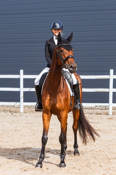 Approved elite mare 167cm/16.2h Top competition results Jumping and hacking Safe for amateurs Top clean x-rays and PPE In September she became national dressage champion of 4 The Year Old Class beating all KWPN horses. ◾️Ksena is a very talented young trakehner horse. She is schooled according to her age and already does green but CLEAN flying changes both ways, shoulder-in, side walks, piruettes, can show some collected steps under the saddle. She is very well balanced and gives very good feeling under the saddle moving from hind legs through the back to the bit. Riding her in the competition ring feels very easy as she moves like a clock: always in the same rhythm and very steady. ◾️The mare has incredible character and working ethics. She is never spooky, always willing to work and trying her heart out. Never buck, rare or do other things what young horses are eager to do. Safe, safe, safe! And puppy type personality! 🐻❄️ ◾️The mare was born in the biggest trakehner stud farm in the world. She is coming from very good breeding lines: her father line covers the dressage blood from one of the most famous trakehner stud farms - Klosterhof Medingen in Germany. Her dam line goes to Grand Prix stallion Horalas which was awarded as Trakehner Horse of The Year in the USA for few years for his sport achievements. ◾️She has been presented at annual trakehner stallions’ and mares’ licensing in 2024 and was evaluated as an ELITE mare by experienced members from Trakehner Verband in Germany and got included in the 1st breeding book of trakehner horses. ◾️Classical dressage training, top care and a variety in every day routine she has received while staying with me: riding in inside and outside arenas, woods, jumps (hunter type obstacles, courses up to 80 cm) training in hand, stretching exercises; best blacksmith in the country; top quality food, supplements, daily paddocks and lots of love 🩷 ◾️This mare is a VERY kind horse and I am looking for the right person for her. I have created a very strong bond with her, she is my heart horse and my priority is to find a person who would first would like to have a true and honest connection with the horse, go the shows and win ribbons, feel safe and happy every day as I feel now. I have loads of videos from our daily life which can provide. Top clean x-rays and PPE Full video hacking: https://youtu.be/C16AuodUlIA?si=55ImavuQ7Lf1CB3J Full video dressage: https://youtu.be/lacjZy6velE?si=1qH6AHiz5DhibgFA Free from piro and other diseases I have sold horses to the USA before and can provide references I take care of all export procedures