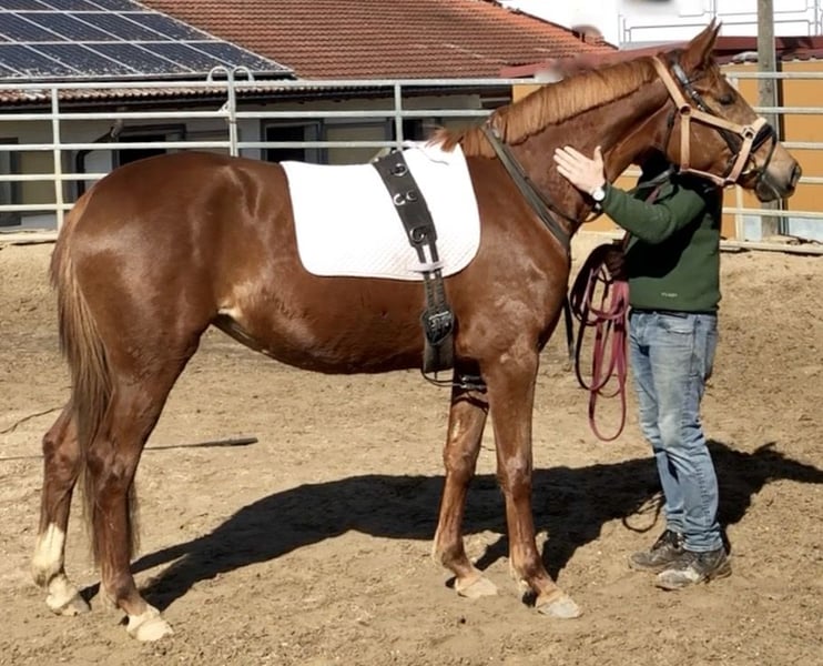 Il 9 novembre 2025, Hailey ha partecipato per la prima volta a una prova di equitazione per cavalli da dressage. (vedi il video attuale). Hailey è una splendida e nobile cavalla rossa. È facile da montare (e ben seduta), socievole e tranquilla. Cerca il contatto con le persone (è una cavalla affettuosa) e si comporta amichevolmente con gli altri cavalli. Rimane calma, ad esempio, quando viene montata da sola nella scuderia o nel paddock esterno – anche quando altri cavalli vengono lavorati contemporaneamente. Tra maggio e giugno 2024 è stata messa in longe e abituata alla sella e al cavaliere. Successivamente, è tornata in stalla e al pascolo per un anno, poiché nata tardi. Ad agosto/settembre 2025, Hailey ha partecipato alla prova di prestazione per puledre presso il Verband Bayerischer Züchter a Monaco-Riem. Ha ottenuto un punteggio di 7,9 nella parte dedicata alla dressage! Valutazioni della prova di selezione, tra le altre: Carattere 10,0; Temperamento 9,0; Disponibilità al lavoro 9,5; Costituzione 9,0 Stato di salute = in perfetta forma. Raggi X del 26/08/2025: molto buoni, senza riscontrare anomalie! Linee di sangue di Hailey: Padre: P.H. Karim Dorè – ha vinto la classe M di dressage all’età di 6 anni. (vedi l’immagine allegata – stallone rossonero). Inoltre, il suo pedigree paterno include i cavalli da Grand Prix E.H. Imperio ed E.H. Insterburg – i due Trakehner “stelle” più valutati nel 2025, rispettivamente al primo e secondo posto. Madre: St.Pr. e Pr.St. Hetidze v.H. – ha vinto la classe M di dressage. Addestrata fino a S-Dressage, purtroppo si è infortunata, diventando poi una cavalla da riproduzione di successo. (vedi immagine allegata – cavalla baia). La sorella maggiore di Hailey è la vincitrice di S-Dressage, St.Pr. e Pr.St. Hadiya, da Grand Prix H. Schwarzgold e dalla stessa madre, St.Pr. e Pr.St. Hetidze v.H. Hailey può essere provata in sella in qualsiasi momento. Per un provino di monta presso l’impianto di Waakirchen, si prega di contattare e concordare un appuntamento con l’istruttrice e amazzone Kathrin Reisinger. Cellulare: 0173 2732008.