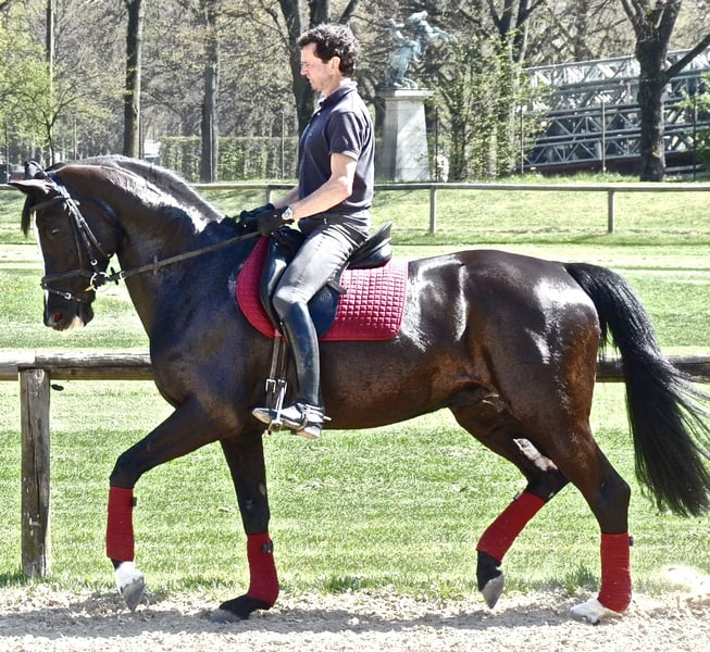 ¡Atención - nuevo! Hailey participará en el día de venta en el "Riemer Pferdemontag" el 10 de noviembre de 2025 en la pista cubierta Olympia en Múnich-Riem. Los caballos en venta se presentarán a partir de las 18:00 horas y luego podrán ser montados en prueba. Para consultas, por favor contacte con el criador y propietario R. Nagel: Teléfono: 0160 966 30 920. **Hailey** es una yegua parda noble y de belleza excepcional. Es fácil de montar (y buena en el asiento), sociable y tranquila. Busca el contacto con las personas (es una yegua afectuosa) y se lleva bien con otros caballos. Mantiene la calma, por ejemplo, cuando se monta sola en la pista cubierta o en el paddock exterior, incluso si otros caballos también están siendo trabajados. En mayo/junio de 2024 fue longeada y familiarizada con la silla y el jinete. Luego, volvió a los establos y a la pradera por un año, ya que nació a finales de la temporada. En agosto/septiembre de 2025, Hailey participó en la prueba de rendimiento de yeguas organizada por la Asociación de Cría de Baviera en Múnich-Riem. Obtuvo una nota de 7,9 en la parte de doma. Ver el vídeo para las impresiones del test de jinete externo. Evaluaciones de la prueba en la pista, entre otras: Carácter 10,0; Temperamento 9,0; Disposición al rendimiento 9,5; Constitución 9,0. Estado de salud = en excelente forma. Radiografías del 26/08/2025: muy buenas, sin hallazgos. **Ascendencia de Hailey:** Padre: P.H. Karim Dorè – a su edad, ganó en M-doma a los 6 años. (Ver imagen adjunta – semental pardo) Además, por parte paterna, desciende de los caballos de doma de Gran Premio E.H. Imperio y E.H. Insterburg, que en 2025 fueron los dos Trakehner de mayor puntuación en la línea de sangre "Sterne", ocupando el primer y segundo puesto. Madre: St.Pr. y Pr.St. Hetidze v.H. – ganó en M-doma. Entrenada hasta S-Doma, pero lamentablemente se lesionó, y desde entonces ha sido una yegua de cría exitosa. (Ver imagen adjunta – yegua torda) La hermana mayor de Hailey es la St.Pr. y Pr.St. Hadiya, que ha competido hasta S-Doma (de Grand Prix H. Schwarzgold y la misma madre, St.Pr. y Pr.St. Hetidze v.H.). Las excelentes cualidades de movimiento básico de Hailey (ver vídeo en la longe) están siendo ahora fomentadas bajo la jineta. Hailey ya está lista para la categoría E-Doma y puede ser montada en prueba en cualquier momento. Para interesados en una prueba en la finca ecuestre en Waakirchen, por favor contacten y coordinen la cita con la entrenadora y amazona Kathrin Reisinger. Teléfono móvil: 0173 2732008. También será posible realizar la prueba en la jornada de venta el 10 de noviembre de 2025 en la pista cubierta Olympia en Múnich-Riem (ver nota arriba).