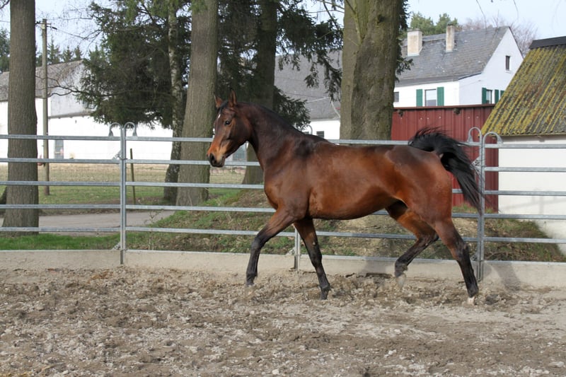 The <b>Trakehner</b> owes its name to the place Trakehnen in East Prussia, where it was bred by King Frederick Wilhelm at the beginning of the 18th century. Danish, Thoroughbred, and Turkish stallions were crossed with local mares to create an elegant carriage horse. From the early 19th century Arab ... More about the horse breed Trakehner