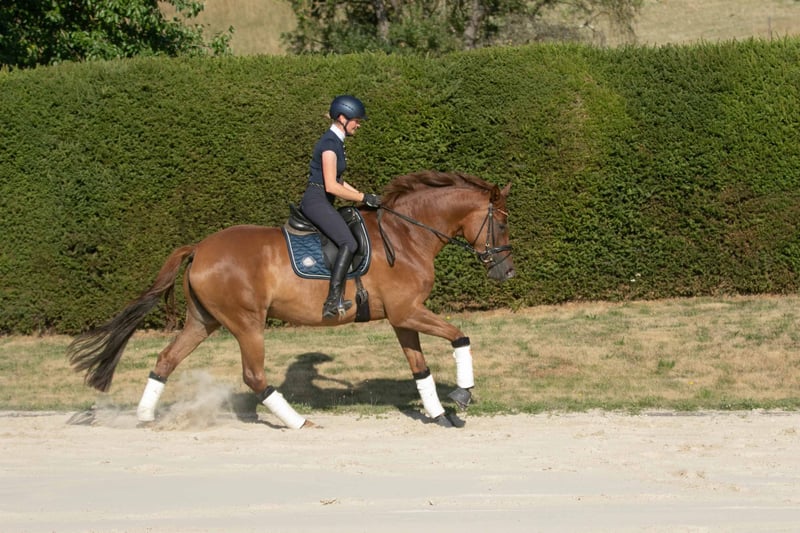 Awarded at the ZStE Hessen 2022 with a very good type, excellent riding horse attributes, and very good, responsive movements, Nachtzauberei was able to win the class for 4-year-old and older mares. The chestnut mare is out of the Herzruf daughter Nadja and possesses the highly sought-after double aptitude. She demonstrates impressive free jumping and remains focused when working over poles and cavaletti. She is also fearless in the field. Her movements are easy to sit, she moves with lightness in the frame, and responds delicately to subtle aids with a soft mouth. She successfully completed her mare performance test with an overall score of 7.45. Nachtzauberei’s sire is Zauberreigen. The athletic grey was reserve champion at his licensing and is now successful in show jumping up to M level and dressage up to S level. Nachtzauberei is the last daughter from our elite breeding Nadja. She has produced a total of 19 offspring, including 7 premium mares and a licensed stallion. Breeding-wise, Nachtzauberei is a true gem! Genetically, she offers all possibilities to produce offspring for every discipline of equestrian sport. Currently, she is lightly ridden and can be bred with your preferred stallion. A breeding lease is also possible (with her remaining in the possession of the lessee). Videos available upon request via WhatsApp.