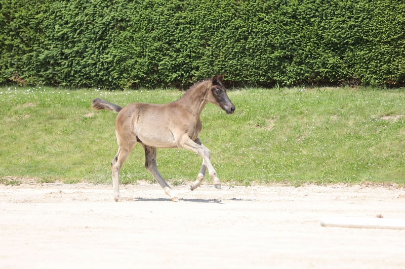 The sire debut of the Millennium son Halcon, who personally represents a highly documented maternal line in terms of dressage, was a success. His first celebrated appearances were also successful, seeing him win and place highly in eventing competitions in keeping with his age. His son is captivating in his elegant appearance, characterized by high nobility and a certain nobility, which he celebrates with confidence at all his performances. His body is athletically constructed, excellently muscled - a real powerhouse! With an effortless flow of movement, supple in every phase of his performance, never lacking the necessary strength and dynamic rhythm, he demonstrates his talents for future great tasks in sport. His dam has an exemplary track record in cross-country and show jumping competitions before devoting herself to her breeding duties. As a daughter of Herzog, she is one of the very few daughters of the former Bundeschampion of eventing horses.