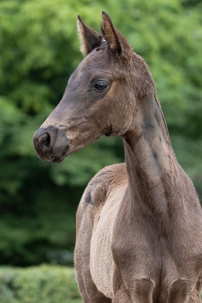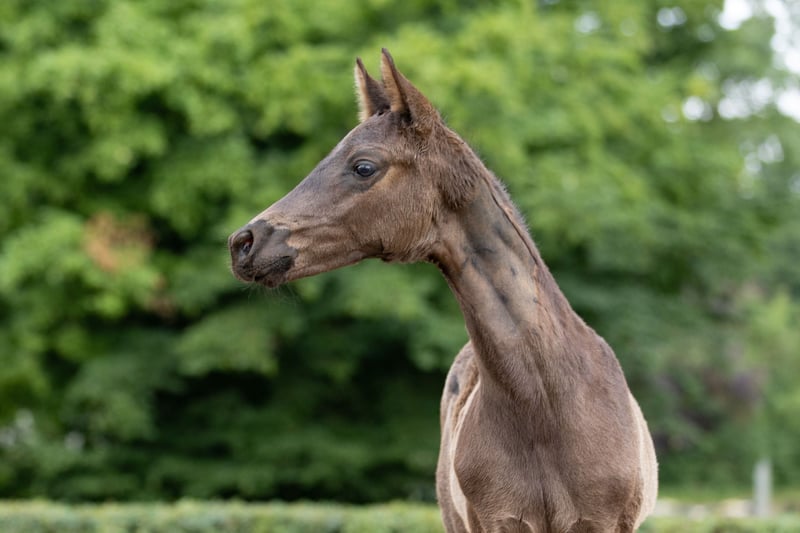 The father, awarded the elite title, holds a prominent position among the Trakehner stallions; he reliably passes on nobility and beauty, dynamic movement, and high rideability. His son, born in March, is also characterized by a very special nobility and distinction; he impresses with his harmonious and rideable body parts, and he moves dynamically and lightly, always in rhythm and in beautiful self-carriage. He is also a gem in terms of character: confident, very people-oriented, he impresses with his exemplary attitude towards all tasks presented to him, naturally halter-trained, loading-friendly, and raised in a natural herd environment. A promising young talent for riding, with his great abilities for a promising career, he will only bring joy.