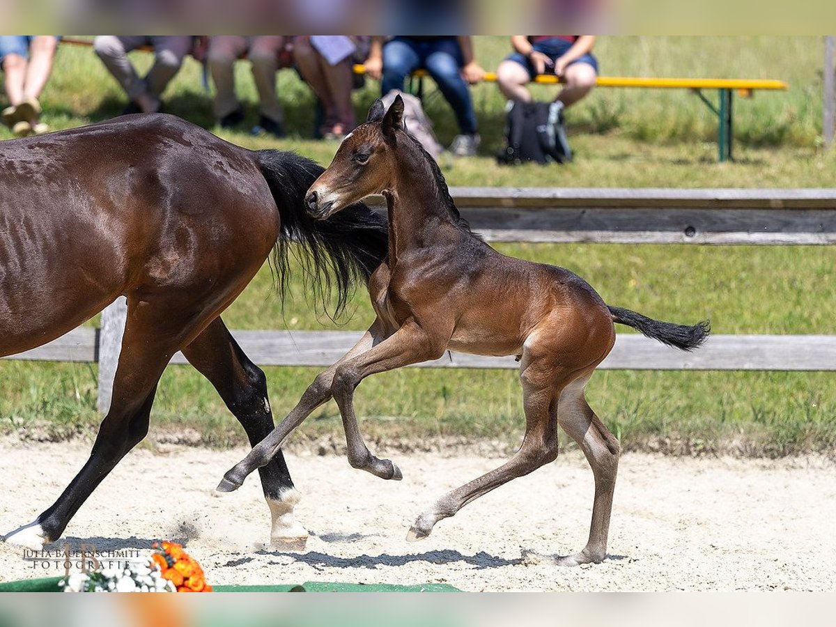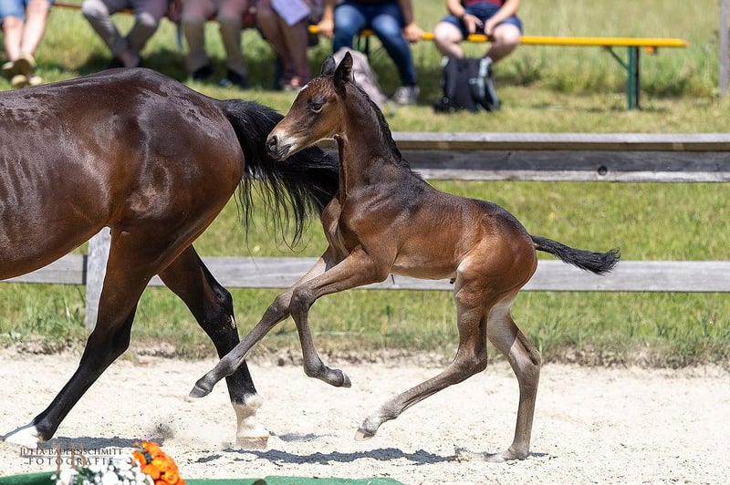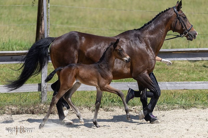 Here, one of the very few descendants of the highly-bred Copperfield, who completed a top-class performance test, showcases his impressive appearance. Particularly noble, distinctly masculine, and with a breed-typical look straight out of a picture book, he is blessed with large, dynamic movements, strength, and freedom in the shoulders: a true candidate with all the talents for advanced training. Well-developed, growing well, and equipped with an exceptionally harmonious physique. On the dam's side, he is also from a highly demanding lineage: Soraya is one of the last active daughters of the great performance sire Herzruf and represents a distinguished mare line that has its roots in the brown herd of Kalpakin at the main stud Trakehnen. Soraya also produced the licensed stallion Sinatra, who is pursuing a promising career in dressage under skilled training on the British Isles. From an excellent home, where the maternal line has been nurtured for generations.