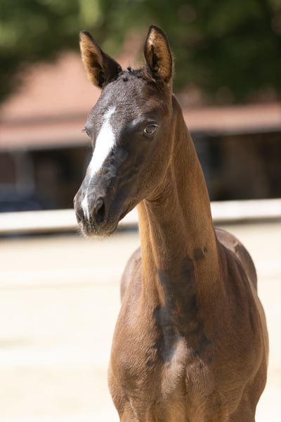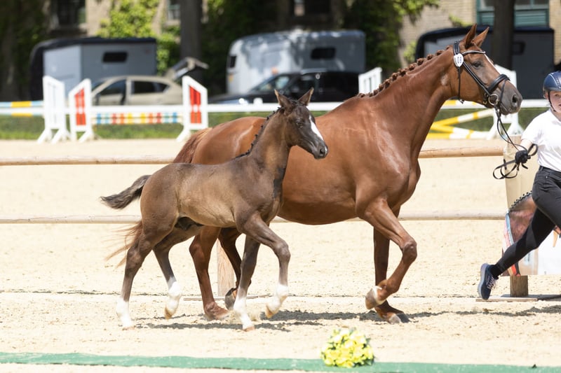 Long-legged and noble, male and distinguished, with generously proportioned body parts, the son of the fascinating Hirtenstern stands out with his athletic appearances. Gifted with great talents, when he moves: he always showcases impressive dynamics uphill, right from the spot with grace and a lot of rhythm. Balanced in temperament, always friendly in his behavior, and trusting towards humans, he always wants to give his best. On the maternal side, he is also excellently bred from a sporting perspective, as his grandfather, along with his full brother Hamilton, boasts a successful career on the Grand Prix and S-level dressage stage. His grandmother Devita is one of the very few daughters of the dressage Olympian Peron.