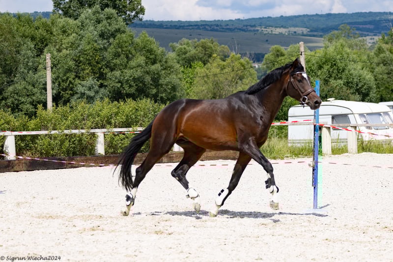 Il fratello pieno più giovane di Van Gogh possiede le migliori doti di dualità, poiché oltre alla capacità di salto geneticamente provata, sa anche muoversi con impulsione e ampiezza al trotto e al canter. È un giovane atleta straordinariamente marcato e in ottime condizioni. Ha vinto la prova di equitazione. Lo stallone si trova a 15 chilometri dall'aeroporto di Sofia. Per ulteriori informazioni visitate il sito: https://www.horse.bg/ o via mail a trakehnerizov@gmail.com Se siete interessati, contattate Laura Sarap, Tel.: 0151-14282398 o Miroslaw Izov, Tel.: (00359) - 896 63 44 44 Ulteriori offerte di vendita da parte dell'allevatore: https://www.ehorses.de/trakehner-wallach-6jahre-166-cm-dunkelfuchs-springpferd-vielseitigkeitspferd-opitsvet---opicvet/4269197.html https://www.ehorses.de/trakehner-wallach-8jahre-167-cm-schwarzbrauner-vielseitigkeitspferd-springpferd-opitsvet---opicvet/4269120.html https://www.ehorses.de/trakehner-hengst-4jahre-167-cm-dunkelbrauner-springpferd-vielseitigkeitspferd-opitsvet---opicvet/4269107.html Il fratello pieno più giovane di Van Gogh possiede le migliori qualità duali perché, oltre alla predisposizione genetica al salto, sa anche trottare e galoppare con slancio e controllo spaziale. È un giovane atleta dal disegno sorprendente e in ottima forma. Vincitore della classe giovani cavalli. Lo stallone si trova a 15 km dall'aeroporto di Sofia. Per ulteriori informazioni, visitate la pagina web all'indirizzo: https://www.horse.bg/ o via e-mail a trakehnerizov@gmail.com Se interessati, contattare Laura Sarap (0151-14282398) o Miroslaw Izov (00359) 896 63 44 44 Altre offerte di vendita dell'allevatore: https://www.ehorses.de/trakehner-wallach-6jahre-166-cm-dunkelfuchs-springpferd-vielseitigkeitspferd-opitsvet---opicvet/4269197.html https://www.ehorses.de/trakehner-wallach-8jahre-167-cm-schwarzbrauner-vielseitigkeitspferd-springpferd-opitsvet---opicvet/4269120.html https://www.ehorses.de/trakehner-hengst-4jahre-167-cm-dunkelbrauner-springpferd-vielseitigkeitspferd-opitsvet---opicvet/4269107.html