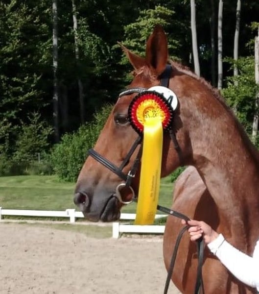 ...mit der 50 % Chance auf Sonderfarbe Roan (Farbwechsler). Warum Sperma - wenn es gleich ein fertiger Embryo sein kann?! Zum Verkauf steht ein Embryo aus der Trakehner Stute Bergkada und dem Vollblüter Leistungsvererber Il Divo xx. Die Stute Bergkada wurde auf der diesjährigen Bundestutenschau in Kranichstein mit dem 1e Preis bedacht. Neben ihrem hervorragenden Pedigree wurde besonders ihr Schritt hervorgehoben: "Jeder Schritt wie der andere, Runde um Runde." Auch im Rahmen ihrer Stuteneintragung konnte sie in den Grundgangarten überzeugen und wurde hier mit den Wertnoten 8, 8, 8 belohnt und auch im Gesamteindruck erhielt sie eine 8. Ihre Abstammung?! Absolut legendär. Namen wie Beg xx, Marduc, Habicht oder Trafaret auf der Hengstseite, sowie die unvergessene Hörsteiner Grande Dame Shynoon zieren ihr Pedigree. Ihre Sonderfarbe Red Roan oder Fuchstichelhaar verdankt sie dem Hengst Bukephalos, der auf den ebenfalls roanfarbenen Insterfeuer zurückgeht. Zur Zeit sind in Deutschland nur zwei Stuten mit diesem seltenen Farbgen zuchtaktiv für die Trakehner. Ein doppeltes Argument: Leistung trifft Farbe! Trotz (oder gerade wegen?) des Leistungsblutes zeigt sich diese Stute absolut unerschrocken und leistungsbereit. Ob Sankt-Martins-Umzug, Kindergeburtstag oder Helikopter-Einsatz auf der Nachbarwiese - dieses Pferd lässt sich durch nichts aus der Ruhe bringen! Das letzte Bild zeigt ihr Trakehner Fohlen aus 2019 von Phlox (Championatsfohlen), das jetzt 6 jährig keine Wünsche als verlässlicher Freizeitpartner offen lässt. Der Vater Il Divo xx, Sohn des Dashing Blade xx, war Reserve-Siegerhengst des „Schaufensters Vollblut“ 2010 in Münster-Handorf. Ein ungmein trockener und großrahmiger Hengst, mit bedeutenden Maßen, viel und korrektem Bein, langen Linien, in klarer Aufteilung seiner Körperpartien. Diese Anpaarung wurde bewusst auch wegen der Schönheit und Noblesse des Hengstes gewählt. Auch seine Exterieur-Points liegen in der Gesamtaufmachung mit komfortablem Schulter-Widerrist-Gürtel und langer, sehr gut angesetzter Halsung, die sich ideal geformt zum Genick hin verjüngt. Il Divo xx ist mit drei hervorragenden, taktsicheren, raumgreifenden und zugleich elastischen Grundgangarten ausstaffiert, die von viel Schulterfreiheit, Vorderbeinaktion gekennzeichnet, immer aus dem aktiven Hinterbein getragen werden. Er kam in drei Rennjahren 15-mal an den Start, davon dreimal siegreich und viermal platziert (GAG 92,5 kg). Eine traumhafte Anpaarung, aus der mehrere Embryonen gewonnen werden konnten. Diese liegen in der renommierten Pferdeklinik Mühlen (Vis á Vis zu Schockemöhle) sicher "auf Eis". Die Spezialisten der Pferdeklinik können die Vorbereitung der Empfängerstute, sowie die erfolgreiche Implantation vor Ort durchführen, Falls keine eigenen geeignete Empfängerstute vorhanden ist, so kann auch bei der Vermittlung geeigneter Empfängertiere seitens der Klinik Hilfestellung geleistet werden. Warum also die Unsicherheit der Besamung in Kauf nehmen - wenn gleich der fertige Embryo mit Traum-Pedigree wartet??!
