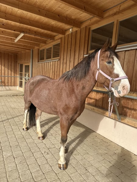 We are selling our incredibly reliable and calm all-rounder with a heavy heart. Both of my daughters learned to ride on him – he can be safely ridden by a five-year-old child as well as an adult rider. He is 100% trail safe and completely bombproof – no bucking, no rearing, and no bad habits. Through his gentle training with our children, he has experienced a lot and remains consistently calm and attentive. He can be ridden with a halter, with or without a saddle, with or without a bit, and is also perfect for lunging or groundwork. He has been regularly worked from the ground and responds delicately to aids. Thanks to numerous trail holidays, he is familiar with terrain, roads, water, traffic, and various environments – he navigates both alone and in a group with absolute confidence. Even two children on his back are no problem for him :-) He has good stamina, is enduring, and was driven before our time. A true gem, rarely found – calm, reliable, and with a big heart. He is barefoot and free of eczema, currently in an active stable. He also knows a box stall. Loads easily and is farrier-friendly. No illnesses or medications in the past five years. Regularly vaccinated and dewormed. A genuine family horse with heart and intelligence, always eager to please his humans. We are looking for a loving home where he will continue to be appreciated as he deserves. To avoid unnecessary travel and to give each interested person enough time, we charge a protection fee of €30, which will be credited towards the purchase price.