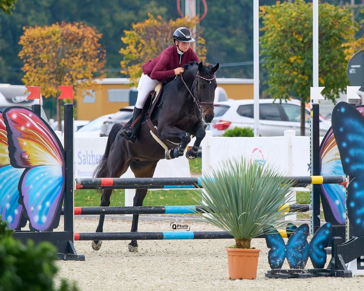 Name: Veni Vidi Vici Geburtsjahr: 2019 Geschlecht: Stute Größe: 1,63 m Level: Zuhause – 1,15 m, Turnier – 1,10 m Standort: Bukarest, Rumänien Preis: Auf Anfrage Beschreibung: Veni Vidi Vici ist eine liebenswerte und vorwärts orientierte Stute mit einer natürlichen, aktiven Gangart. Sie besitzt eine angenehme, willige Persönlichkeit – stets bemüht, ihren Reiter zu verstehen und ihr Bestes zu geben. Derzeit arbeitet sie bis 1,15 m im Training zu Hause und startet erfolgreich in 1,10 m Prüfungen. Sie zeigt deutliches Potenzial, mit der richtigen Reiterin oder dem richtigen Reiter selbstbewusst in Richtung 1,25–1,30 m zu wachsen. Sie ist kein Anfängerpferd, aber eine hervorragende Partnerin für einen selbstbewussten Amateur oder einen Reiter, der seine Fähigkeiten weiterentwickeln möchte – besonders für diejenigen, die einen vorwärts gerichteten Typ mit natürlichem Rhythmus und Begeisterung schätzen. Ihre Bewegungen sind ausdrucksstark und weich, was sie nicht nur für Springprüfungen geeignet macht, sondern auch für Amateure, die Wert auf gutes Grundlagentraining im Dressurbereich legen oder Dressur mit Springen kombinieren möchten. In Speedklassen zeigt sie ihr wahres Können – mutig, schnell und zwischen den Sprüngen natürlich effizient. Veni Vidi Vici wäre die perfekte Partnerin für eine junge Reiterin oder einen motivierten Amateur, der eine freundliche, reaktionsschnelle und vielversprechende Stute sucht, mit der sie gemeinsam wachsen können. Ein liebenswertes Wesen und eine echte Freude im Stall. 🐎✨