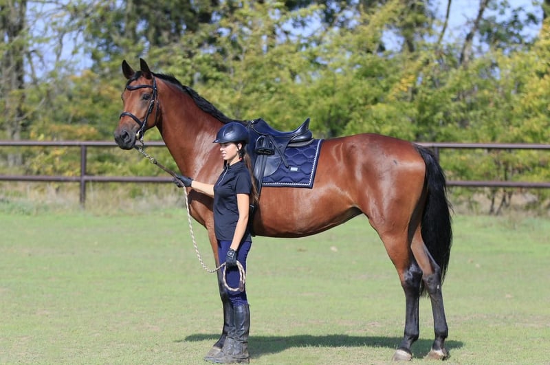 Santa Bernay 2017 • Klacz • Oldenburg • Perspektywa ujeżdżeniowa i klacz hodowlana Piękna gniada klacz o eleganckim typie i silnej prezencji. Santa Bernay ma harmonijną budowę, ekspresywny ruch oraz spokojny, współpracujący temperament. Wykazuje rytm, równowagę i elastyczność we wszystkich trzech chodach, co czyni ją obiecującą partnerką zarówno do sportu, jak i hodowli. Rodowód: Bernay — Tarbagan. Cena: 13 000 € Eksport możliwy.