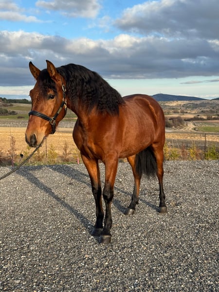 Afortunado is a stunning young PRE stallion with full registration and a compact, baroque type that immediately captures attention. With his expressive face, naturally striking "eyeliner" eyes, and incredibly charming expression, he looks like a horse from a fairytale – and is also extremely photogenic. This young stallion impresses not only with his extraordinary appearance but also with his very sweet, human-oriented character. Tamar is very friendly, gentle, and easy to handle in daily interactions, and already shows motivation and willingness to learn during work. • Pure Spanish Breed (PRE) with full papers • Stallion • Born: 07/2023 • Current height: approx. 1.50 m (15 hh) • Expected final height: approx. 1.55 m (15.2 hh) ✔ Clear X-rays available ✔ Negative for piroplasmosis ✔ Already backed ✔ Extremely gentle and sweet in character ✔ Very easy to handle ✔ Human-oriented and motivated to work His particularly sought-after size in XXL pony / small horse format makes him especially interesting. Many riders are looking for a compact horse with charisma, strength, and elegance in this size range. Afortunado combines baroque beauty, an excellent character, and a rare size – a truly special opportunity to find a PRE with this unique combination of look, temperament, and stature. 📍 Location: Spain 📩 Feel free to contact us for videos and more information 🚚 Worldwide transport can be arranged
