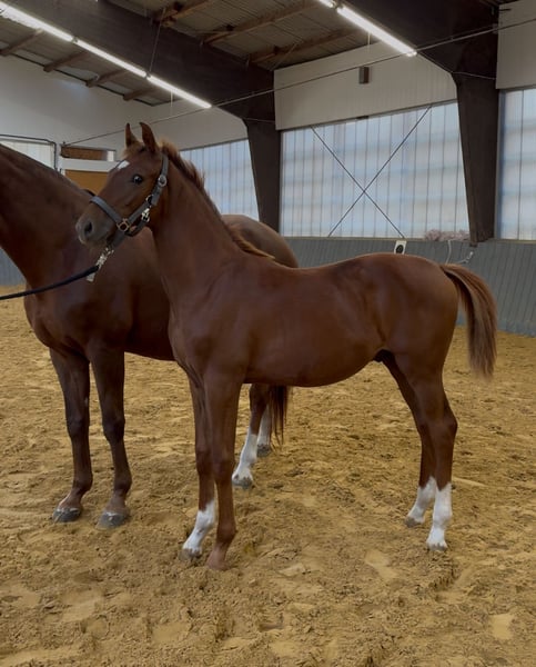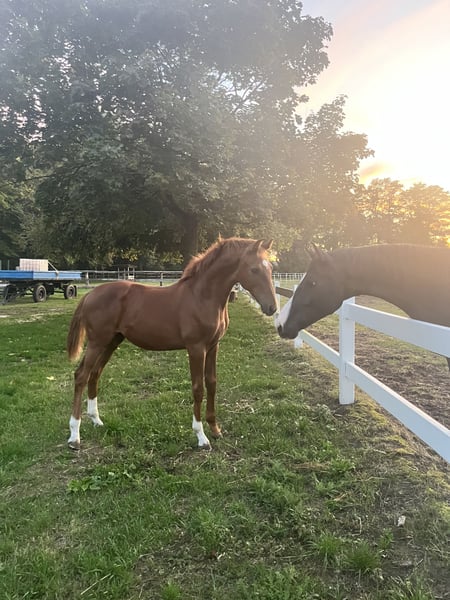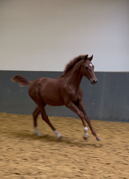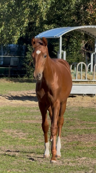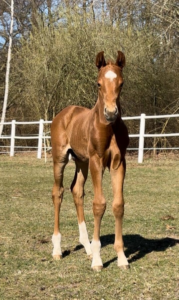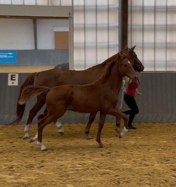 Ein ausdrucksstarkes Hengstfohlen, gezogen aus unserer Staatsprämienstute Donna Laura (V. Dr. Doolittle - Donnerhall) und damit aus einer bewährten Mutterlinie, die bereits zahlreiche Erfolge hervorgebracht hat: prämierte Stute, ein im Sport erfolgreicher Wallach sowie ein weiterer Sohn, der seinen Platz bei der Bundespolizei gefunden hat. Zwei weitere Nachkommen stehen direkt bei uns im Stall: ein 3-jahriger Vollbruder sowie ein 8-jahriger Halbbruder, die unter dem Sattel überzeugen und gerne vor Ort besichtigt werden können - ein direkter Beweis für die Rittigkeit und Qualität dieser Mutterlinie. Der Vater Vitalis zählt zu den erfolgreichsten und gefragtesten Vererbern der Gegenwart und ergänzt die Donnerhall-Linie perfekt. • Typ & Fundament: harmonisch, korrekt gestellt, mit natürlicher Aufrichtung und klarer Bergauftendenz. • Schritt: energisch, taktsicher und mit sehr guter Übertrittssicherheit. • Trab: ausdrucksstark, elastisch und schwungvoll, mit viel Schulterfreiheit und aktiver Hinterhand. • Galopp: bergauf gesprungen, ausbalanciert, mit natürlicher Versammlungstendenz. Charakter: Mutig, selbstbewusst und zugleich menschenbezogen und verschmust. Halfterführig, bereits sehr kooperativ im täglichen Umgang, mit dem gewissen „Feuer im Blut", das einen künftigen Sportpartner auszeichnet. Besonderheit: Das Hengstfohlen kann in unserem eigenen Stall, dem Reitzentrum Stehler, in einer Hengstherde artgerecht aufgezogen werden - beste Voraussetzungen für ein gesundes und soziales Heranwachsen. Perspektive: Ein Nachwuchspferd mit allen Anlagen, um im Dressursport wie auch in der Zucht eine herausragende Rolle zu spielen.