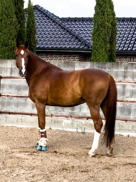 Damiro (Dankeschön x Sunny Boy x Acapulco), un caballo castrado nacido en 2015, es un excelente compañero para la competición en doma clásica. Mide aproximadamente 1,76 m y posee un carácter honesto. Damiro es muy dispuesto a aprender; lo llevo desde hace casi 6 años y nunca ha tenido experiencias negativas. La herradura y la conducción en remolque tampoco representan un problema para él. Para más información o si está interesado, no dude en contactarme.