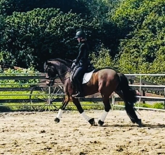 🌟Adora🌟 6yr old Warlander Mare 15.2h Training Level Dressage, working on lateral work. Trails. Safe and Comfortable. Quiet and sweet! Would make a good kids horse or someone that wanted to train up the levels. Quick learner and wants to please. Very friendly! A sweetheart❤️ Barefoot. Easy keeper. Low 5 digits. 🥕 Jennifer 949 291 7934 Orange County , CA