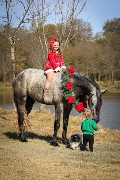 ⚜️𝐓𝐇𝐄 𝓗𝓮𝓻𝓲𝓽𝓪𝓰𝓮 𝐖𝐢𝐧𝐭𝐞𝐫 𝓒𝓵𝓪𝓼𝓼𝓲𝓬⚜️ Happening now thru MONDAY | DECEMBER 29th - Available EXCLUSIVELY on HorseBid's website! For more details and to register visit: www.Horsebid.com CONSIGNOR CONTACT: MM Ranch 419-318-1902 LOCATION: Forney, TX BREED: Warlander REGISTERED: No COLOR: Dappled Gray HEIGHT: 16 AGE: 4 GENDER: Stallion Are you ready to be in AWE!! Look at this one!! This is CASANOVA!!! A true one in a lifetime Warlander. The kind of horse you didn’t know you needed in your life. The kind of horse that should be in the movies!! Casanova is just turning 4 yrs old and is stunning dappled gray WARLANDER STALLION. Standing 16 hands tall. Yes 16 hands. He is a big stout long legged guy. He is half Friesian and half Lusitano. We know the people that bred and raised him. They owed both parents. They specialize in the warlander breed. They hand raised this magical creature. He has been handled since the day he was born. He is gentle and kind. He has a naturally docile gene. He truly loves to be around people. He meets you at the gates. Loves attention. Very playful. Absolutely loves balls and rope toys. Loves to carry them around tossing them in the air. He is so much fun not only to ride but just also be around. Very quit and easy to handle. We have never had to use a stud chain on him. Not even around mares in heat. If you tell him no he will not even look at them. He knows lots of fancy moves. Started correct with an excellent foundation. Has a very unique way of traveling. He rides nothing like a quarter horse. Imagine driving a Porsche. That is what it’s like riding him. He has been thought some dressage. He is young athletic, intelligent, versatile. Ready to go on and do big things. He would make an excellent show horse. Whether is dressage or jumping. Or just use him as a trail horse. He rides both English and western. Doesn’t matter to him. He just wants to please. We made the decision to leave him a stud so can use him bred if wanted. Imagine the beautiful babies he would sire. He is the quietest most well behavior stud!! He is in a paddock with 2 mares and miniature gelding pony!! He is not mean or hard to handle. When you ride him he acts just like a gelding. Yes you could easily make him a gelding if you wanted. But wanted to leave that option open. How could you have a bad day when you have this guy in your barn!! If you would like anymore info on Casanova please call. We would love to talk to you about him. He is up to date on shots, new coggins test, up to date on vaccinations, just had his feet trimmed. He has wore shoes but absolutely does not need them. He has perfect black feet. He is 100% sound. No maintenance. He is a very easy keeper. We can and will help arrange shipping anywhere needed.
