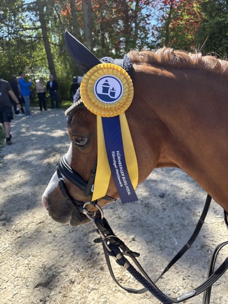 Dream Pony – The perfect companion for dressage, jumping, play, and fun! For sale is a beautiful Welsh-A gelding born in 2014. This charming chestnut impresses with his friendly nature and versatile talents. With a height of 120 cm, he is ideal for small children taking their first steps in riding. His strong talent in the dressage arena makes him a reliable partner for ambitious beginners and more advanced riders. The gelding is well-trained, easy-going, and always shows enthusiasm for work. Play and fun are just as important to him; he can perform some tricks, is comfortable in the outdoor environment including water crossings, and is open to any kind of mischief. From leadline competitions to higher classes, he is a real eye-catcher. Videos and further information are available upon phone inquiry. Of course, we wish for Leo to receive optimal care. If you are interested or have further questions, please feel free to contact me. A personal meeting is always possible!