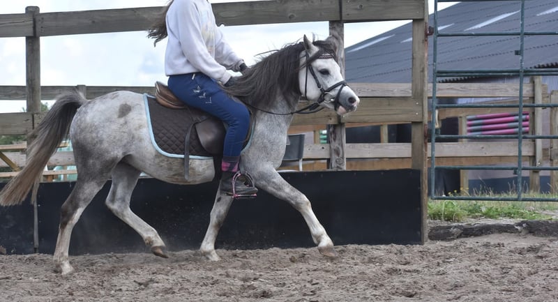 Cuppers Winston is de naam van deze , bijna 4 jarige spetter! Zijn roepnaam is Blue Boy. Hij heeft dan ook een prachtige , blauwe appelschimmelkleur. Hij heeft een fantastische stamboom, klik hier voor zijn papier : Eindegooi’s Pretty Charmer x # Oldenzijlster Action Man x #Vechtzicht’s Cymro Bach. Hij heeft een prachtige, volle en toch chique bouw. Een hoofdje zó uit een Disney film geknipt. En zijn gangen zijn spectaculair ! Er is al veel grondwerk gedaan met Blue Boy en hij is hier en voorheen dan ook superbraaf in de omgang en in de trailer, op stal en in de wei. . Winston is nu een ruin, maar als hengst was hij al superbraaf. Hij groeit nu de hoogte in. Is een grote B maat. Het is een ontzettend meewerkende, superlieve ruin . Hij vindt het gezellig om te rijden en wil graag verder groeien: voor de recreatie is hij hier braaf genoeg, maar als sportpony is hij ook zeer geschikt. We verwachten dat hij heel makkelijk te beleren is voor de koets, wat zal dat een prachtig plaatje zijn! Hij vindt het superleuk om te rijden en is hier vanaf het begin braaf mee, we konden vanaf het allereerste begin meteen zonder problemen op hem gaan zitten. Prijs 4750,- incl. merkzadel en dekje