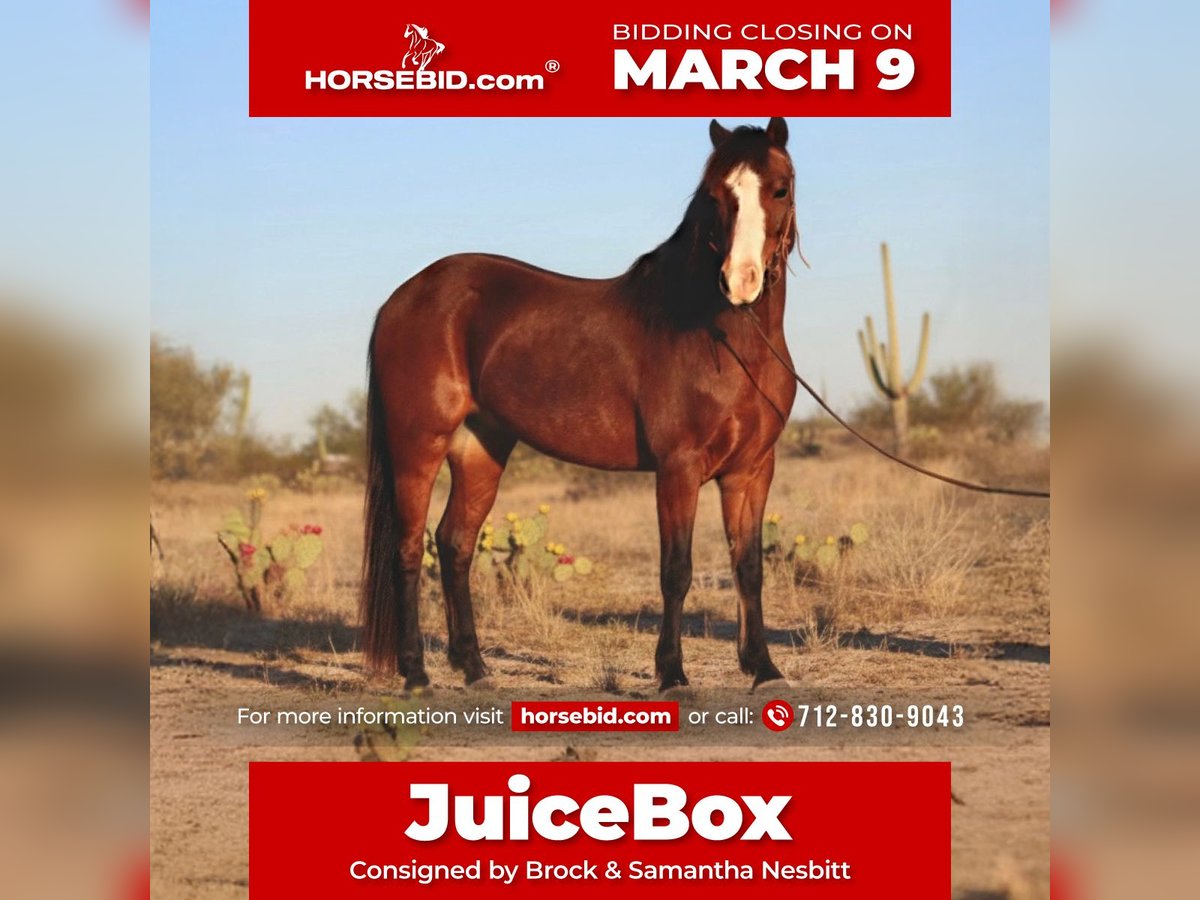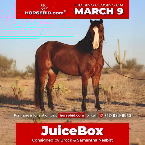 ℳ𝒶𝓇𝒸𝒽 ♦️𝐑𝐈𝐃𝐄𝐑'𝐒 𝐂𝐇𝐎𝐈𝐂𝐄♦️ Happening now thru MONDAY | MARCH 9th - Available EXCLUSIVELY on HorseBid's website! For more details and to register visit: www.Horsebid.com CONSIGNOR CONTACT: Brock & Samantha Nesbitt 712-830-9043 LOCATION: Stephenville, TX BREED: Welsh Pony REGISTERED: Yes REGISTERED NAME: RAMBO’S MIRROR COLOR: Bay HEIGHT: 12.1 AGE: 7 GENDER: Gelding If you have been waiting for a pony that does not look like a pony, here he is! This seven-year-old papered gelding sets himself apart the moment he walks into view. He has plenty of chrome, balanced conformation, and a refined, pretty head that mirrors the look of a high-dollar big horse. There is nothing coarse or common about him. No heavy pony head, no thick jaw, no ordinary outline. He is clean, sharp, and elegant from every angle, the kind that draws attention without trying. You will look long and hard before you find another one built and presented like this. He moves like a performance horse. Smooth, fluid, athletic, and naturally balanced, he carries himself with presence and power. He is responsive and intelligent. He has a really nice stop, stays collected. JuiceBox is sharp in the right way — athletic and smart. This is a gelding with feel and trainability. He has been started on the roping sled and is comfortable around ropes, cattle, and other horses. He loads and hauls well, stands tied, and picks up his feet. He has seen enough to be confident, and at the perfect age of seven years old he is just stepping into his prime with his entire life ahead of him. Whether you want to finish him into a serious barrel pony, a breakaway prospect, he has the athleticism and mind to go on in any direction. As well as the looks to step into the show pen. One of the rarest qualities about him is his size and build. He is small enough to be ideal for youth riders, yet big enough for an adult to step on comfortably. That versatility alone is hard to find. Combine that with his eye appeal, presence, and athletic ability, and you have something truly uncommon. He has the kind of look that belongs in the show ring and the ability to back it up. You can buy ponies every day. You cannot buy this level of class and refinement every day. Quality like this is rare, and the buyers who understand it recognize it immediately. If you are looking for ordinary, he is not your pony. If you are looking for exceptional, he is ready to meet the standard.