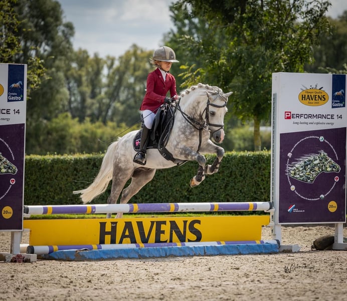 Meine Töchter haben mit ihm in der niedrigen -Klassen angefangen. Er ist in ungewohnter Umgebung gut erzogen und hat schon viel erlebt: Dutch Masters, jumping indoor Maastricht, , regionale Meisterschaften usw.