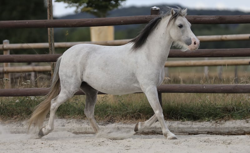 Paquita, a Welsh A mare without papers. She is unspoiled and accustomed to daily handling: grooming, tying, hoof care, etc. Paquita is a truly lovely little lady. She has been living in a herd of large horses for the past 8 years and has always been able to assert herself well. She has a very gentle nature but also possesses enough self-confidence. Paquita would surely make a fantastic driving pony or also serve well as a riding pony. In any case, we wish for Paquita to find a new home where she can be treated as a pony, be herself, and find her loving place. Serious inquiries are welcome!