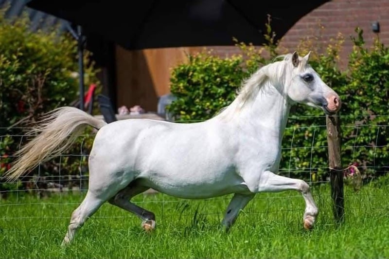 Ivm wijziging plannen door gezondheidsproblemen mag onze 3 jarige Roughclouds Elodie verhuizen. Als veulen aangekocht bij de fokker met het idee om haar te showen en voor de fokkerij in te zetten, helaas moeten we minderen ivm gezondheidsredenen. Ze komt uit een super mooi lijntje! Moeder is bijna preferent (op 1 nakomeling na), diverse broers en zussen zijn kampioen geworden wat haar uitermate geschikt maakt voor showen en de fokkerij! Ze zal ook zeker niet misstaan in de sport. (Foto 3) Richards Lady Pepper (v. Emilio van de Garderenshof) x (Foto 4) Colne Tibo (v. Nantdywyll Telor) Afgelopen zomer een paar keer gelongeerd, dit pakte ze heel snel en makkelijk op. Verder nog groen en volledig naar eigen hand te zetten. Lief karakter, staat altijd vooraan in de wei! Verder is Elodie gezond en heeft ze geen (stal)gebreken. Filmpje is als veulen om een beeld te geven hoe ze regelmatig door de wei gaat, dit doet ze nogsteeds. Voorkeur gaat uit naar snelle afhandeling aangezien ik zelf niet bij mn pony’s kom op dit moment.