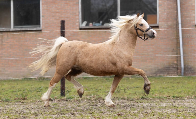 Te koop: Schitterende Welsh-A merrie (Palomino, geboren in 2023) Met pijn in het hart bieden wij deze prachtige palomino merrie te koop aan. Een echte blikvanger dankzij haar schitterende kleur, elegante uitstraling en opvallend goede beweging. Deze merrie komt zo uit de opfok en is nog volledig groen. Ze moet dus nog veel leren, maar biedt daardoor alle mogelijkheden om haar helemaal naar eigen hand te zetten. Ideaal voor iemand die op zoek is naar een jong paard om zelf op te leiden. Ze is afkomstig uit mooie bloedlijnen. Haar vader loopt internationaal in de 4-span mensport. Door haar bouw, beweging en afstamming is ze zowel geschikt voor de sport als voor de fokkerij. Voor meer informatie of een bezichtiging, neem gerust contact op.