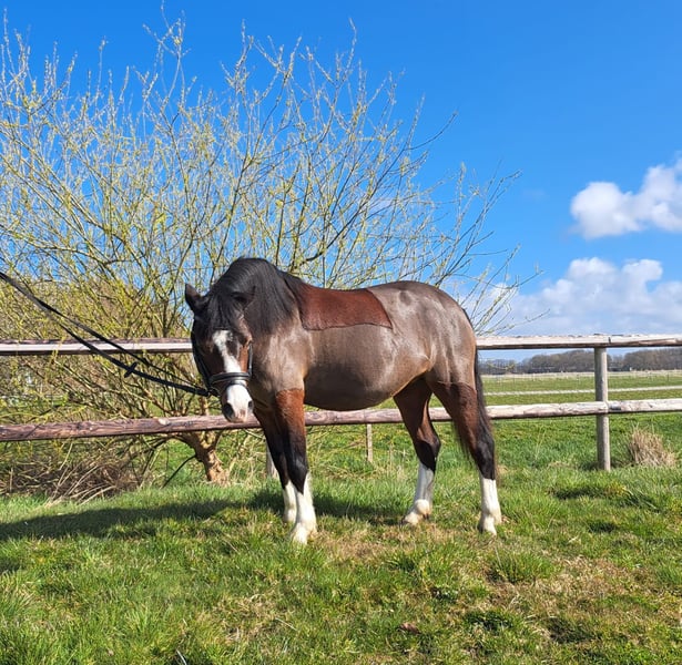 Unsere Ponystute Lizzy sucht leider aus privaten Gründen ein neues Zuhause. Sie ist 2021 geboren und ca. 1,20 m groß im Hengsttyp stehend. Sie ist ein absolutes Kinderpony. Aufgrund ihrer guten Abstammung auch für die Zucht interessant. Meine Kinder können mit ihr jeden Quatsch machen, sie wird aber von ihnen hauptsächlich an der Longe oder geführt geritten, am Ende der Stunde reitet meine Große (4Jahre) auch frei. Sie ist leicht frei zu reiten mit schönen Grundgangarten und absolut kinderfreundlich und schusssicher. Kindergeburtstage hat sie auch schon mit Bravour gemeistert, genauso wie Ausritte alleine oder geführt mit meinen Kindern (jetzt 2 und 4). In der Haltung ist sie unkompliziert, sie kennt sowohl Boxen mit Auslauf als auch Offenstallhaltung. Natürlich ist sie schmiede und verladefromm. Sie macht auch einen tollen Sprung. Alles in allem ein sehr schönes Kinderpony. Zahnärztliche Kontrolle fand dieses Jahr schon statt und sie wird weiterhin gefordert und gefördert. Ein Pony zum sofort losreiten und Spaß haben auch nach Urlaubspause auf der Weide.