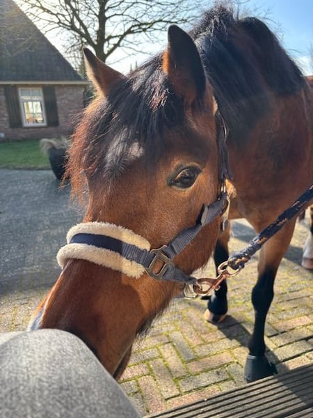 Onze lieve Porsche mag een ander kindje heel blij gaan maken. Onze jongste dochter is met haar begonnen en stapt nu over op onze D pony. Porsche is een Welsch stamboek (ster) merrie van 5 jaar oud. Ze houdt enorm van poetsen, knuffels en lekker rijden. In de bak of buiten, echt alles is goed. Ze is nog wel jong dus enige begeleiding is wenselijk. Kortom wij zoeken een nieuw 5***** huisje/baasje voor haar!