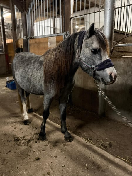 Onze kleine Midnight zoekt een fijn thuis. Hij is 2,5 jaar jong met een huidige schofthoogte van 1,13 m. Hij is gevaccineerd, ontwormd en regelmatig bij de smid geweest. Hij kent de veulen ABC en is aangelijnd. Hij heeft volledige papieren. Bij vragen staan wij graag tot uw beschikking.