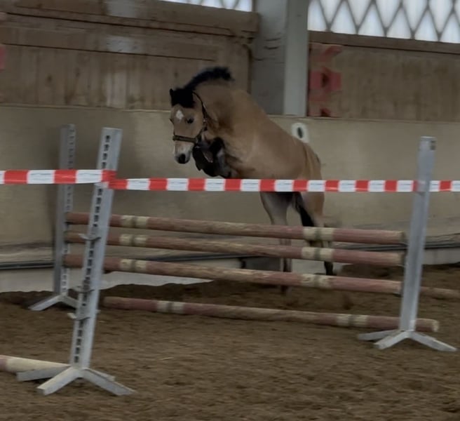 Zum Verkauf steht ein 15jähriger charmanter Welsh-B Wallach. Mit seinem freundlichen und sehr aufgeschlossenem Wesen und seiner Bewegungsfreude ist er ein idealer Partner für ambitionierte und mutige Nachwuchsreiter, die Spaß an einem temperamentvollem Pony haben. Renzo (genannt Pepino) überzeugt durch seine seine liebe Art im Umgang und Neugierde. Wenn man ihn ruft kommt er immer angetrabt. Er ist mutig und selbstbewusst und weiß sich zu präsentieren. Derzeit wird er von einer 13jährigen Reiterin in der Dressur und in Stangen- und Springstunden gearbeitet. Er steht voll im Training. Regelmäßig nimmt er beim Freispringen teil und zeigt hier große Freude und Potenzial (max. 110 cm). Springt einen kleinen Parcoure. Bei weiterer Förderung viel Luft nach oben, im Springen als auch in der Dressur. Er ist immer hoch motiviert und lernt gerne und schnell. Beim Spazierengehen im Gelände ist er sehr brav und anständig. Er zeigt sich hier mutig und unerschrocken. Wir könnten ihn uns auch gut als Fahrpony vorstellen. Das wurde aber bisher nicht von uns ausprobiert. Pepino ist topfit, robust und war bisher immer gesund. Keine Krankheiten, oder gesundheitliche Einschränkungen sind bekannt. Die Zähne wurden regelmäßig kontrolliert und er ist turnierregelkonform geimpft. Bei uns steht er in einer Box mit täglich Paddock und im Sommer stundenweise auf der Koppel gemeinsam mit unserem Wallach. Hier ist er verspielt und braucht einen Partner, der damit umgehen kann. Aufgrund seiner Bewegungsfreudigkeit können wir uns auch gut einen Offenstall mit passenden Partnern vorstellen. Er trägt vorne Eisen. Warum geben wir einen so tollen Kerl ab? Wir haben ihn vor 2 Jahren für unsere jetzt 6jährige Tochter als "Kinderpony" gekauft und mussten aber leider feststellen, dass er für ein so junges und unerfahrenes Reiterlein zu viel Temperament und Go hat. Das Reiten an der Longe klappt sehr gut aber zum freien Reiten reicht es noch lange nicht. Unsere Empfehlung wäre ein mutiger und ambitionierter jugendlicher Reiter (ab 10 Jahre) der bereits gut im Sattel sitzt und genug Erfahrung sammeln konnte. Dennoch haben wir in den letzten beiden Jahren die Zeit mit vielen wunderschönen Momenten und auch Erfolgen mit Pepino erleben dürfen. Er wurde von unserer damals 4-5jährigen Tochter in der Ponyführzügelklasse regelmäßig auf Turnieren vorgestellt, wie z.B.: *1. Platz bei den YoungTalents in München Riem 2024 *3. Platz beim Nürnburger Burg Pokal im Rahmen der Pferd International in München sowie vielen weiteren vorderen Plätzen. Achtung: Auch hier zeigt er sein Temperament ist aber immer händelbar. Aufgrund seiner sportlichen und eher zierlichen Statur empfehlen wir ein maximales Reitergewicht von 55 kg und eine Größe von maximal 165 cm. Das Freispring- und Freilaufvideo ist top aktuell vom 15.02.2026. Das Video vom Springtraining ist vom 22.02.2026 bzw. 08.03.2026 Bei Interesse oder für weitere Informationen stehe ich gerne zur Verfügung. Ein persönliches Kennenlernen ist jederzeit möglich.