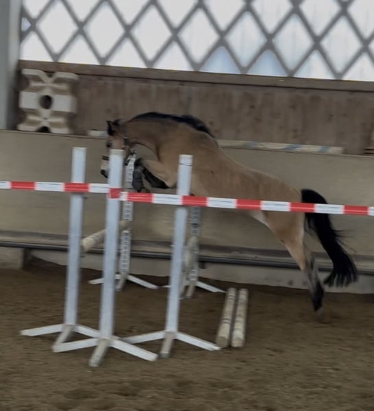 For sale is a charming 15-year-old Welsh B gelding. With his friendly and very open demeanor and his joy of movement, he is an ideal partner for ambitious and confident young riders who enjoy a spirited pony. Renzo (called Pepino) impresses with his kind nature and curiosity. He always comes trotting when called. He is brave and self-assured and knows how to present himself. Currently, he is being ridden by a 13-year-old girl in dressage and lunging and pole and jumping lessons, and he is being prepared for his first competitions. He is fully in training. He regularly participates in free jumping and shows great enthusiasm and potential here (max. 110 cm). Occasionally, he tends to "overjump," but at appropriate pace, this is easy to manage under saddle. When hacking out in the countryside, he is very well-behaved and well-mannered. He shows courage and fearlessness here. We could also easily imagine him as a driving pony, although this has not been tried with us so far. Pepino is in top condition, robust, and has always been healthy so far. No illnesses or health issues are known. His teeth are regularly checked, and he is up-to-date with vaccinations according to competition standards. He is stabled in a box with daily turnout in a paddock and, in summer, turnout in the pasture for a few hours together with our gelding. He is playful here and needs a partner that can handle that. Due to his love of movement, we also see him well suited for a paddock with compatible companions. He wears front shoes. Why are we offering such a wonderful fellow? We bought him two years ago for our now 6-year-old daughter as a "children's pony," but unfortunately, we have realized that he has too much temperament and go for such a young and inexperienced rider. Lunge work is very good, but he is not yet suitable for free riding. We recommend a brave and ambitious young rider who is already well-sitter and knows how to assert themselves. Occasionally, Pepino tests his limits during riding—but after clarification, he behaves as if on a "string." Nonetheless, we have enjoyed many beautiful moments and successes with Pepino over the past two years. He was regularly shown in the pony lead-rein class by our then 4- to 5-year-old daughter at competitions, such as: * 1st place at the YoungTalents in Munich Riem 2024 * 3rd place at the Nuremberg Castle Cup during Pferd International in Munich as well as many other top placements. Please note: He also shows his temperament here, but he is always manageable. Due to his athletic and rather delicate stature, we recommend a maximum rider weight of 55 kg and a height of no more than 165 cm. The free jumping and free turnout videos are very recent, from February 15, 2026. The jumping training video is from February 22, 2026. If you are interested or would like more information, I am happy to assist. A personal meeting is always possible.