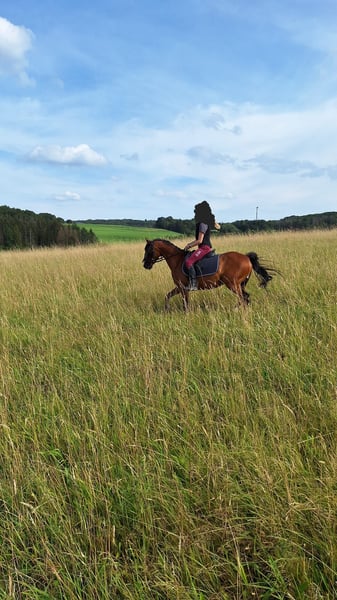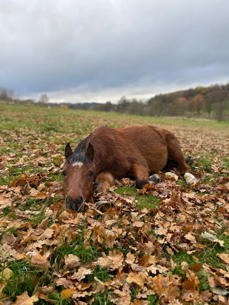 Aragon è alto 1,36 m, compatibile con il branco e adora essere coccolato e coinvolto nelle attività. Cerco per lui un paddock all'aperto, poiché soffre di artrosi al ginocchio anteriore destro. A causa dell'artrosi, può essere montato solo in modo molto limitato. La cavallerizza dovrebbe pesare non più di 40 kg.