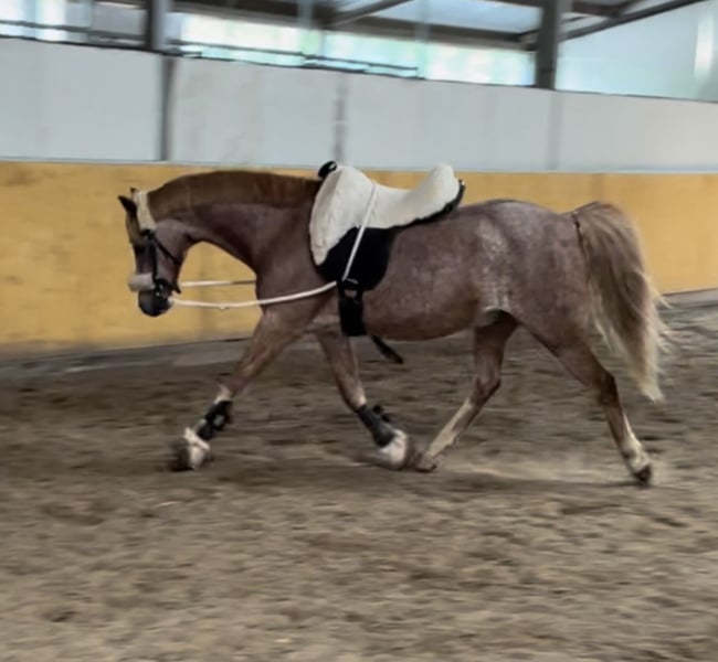 Hallo, Ich suche für meinen 19 jährigen Welsh B Wallach ein neues Zuhause. Er ist ein absoluter Allrounder, geht ins Gelände (dort allerdings sehr flott), ist unerschrocken, kennt Trecker, Autos, LKWs, läuft gut auf dem Platz und springt sehr gerne und gut. Er ist 1,36 groß, regelmäßig beim Schmied und Zahnarzt. Er kann einige Tricks und liebt auch die Bodenarbeit. Er kann auch von Kindern geritten werden hier allerdings gegebenenfalls mit Dreieckern. Er hat keine Unarten wie bocken treten beißen oder ähnliches. Er kann auf Kommando steigen, macht dies aber nur wenn man es verlangt. Er verträgt sich mich allen Pferden und ist weder rangniedrig noch ranghoch. Kennt Offenstall sowie Bodenhaltung und kann auch 24/7 auf Weide gehalten werden ohne Rehegefahr. Er trägt vorne Eisen da er auf steinigen Böden etwas fühlig lief. Er ist kein Gewichtsträger! Maximal 50 Kilo Er ist nie krank hatte noch nie Husten oder eine Kolik. Lediglich einmal einen Riss im Hufbein weil er auf einen Stein gesprungen ist. Dieser ist natürlich vollständig ausgeheilt. Es gibt ein paar Videos, ansonsten darf man sich den Kleinen auch gerne persönlich anschauen. Schreibt mich gern an bei offenliegenden Fragen PLATZ VOR PREIS