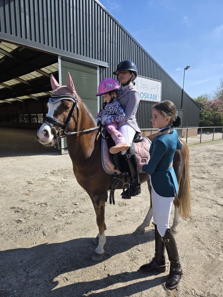 Onze lieve Wynswood Elfie WNE mag een nieuw ruitertje alle kneepjes van het vak leren! Elfie is een 9 jarige ruin. Hij is 130cm groot (zonder hoefijzers) en allround opgeleid door mijn dochter. Wij hebben hem vanaf zijn 3de en inmiddels alles met hem gedaan. Dressuur: Hij is M1 geklasseerd met winst. Hij loopt makkelijk nageeflijk, heeft fijne gangen en een hele fijne verzamelde galop. Verruimen doet hij heel mooi en krijgt hij vaak hoge punten voor! Ook de zijgangen gaan hem gemakkelijk af. Springen: Elfie is uitgebracht t/m 60cm springen, maar heeft nog meer potentie. Hij krijgt vaak hoge stijlpunten en in de barrage kan hij lekker snel zijn. Cross: We zijn sinds kort begonnen met crosstrainingen. Dit pakt hij super goed op. Elfie is naast een sportpony ook een echte kinderpony waar je veel lol mee kunt hebben. Zonder zadel, zonder hoofdstel, bosritjes, strandritjes, alles vindt deze pony leuk! En alles doet hij super braaf. Hij is nooit fris of heet en nooit Onze lieve Wynswood Elfie WNE mag een nieuw ruitertje alle kneepjes van het vak leren! Elfie is een 9 jarige ruin. Hij is 130cm groot (zonder hoefijzers) en allround opgeleid door mijn dochter. Wij hebben hem vanaf zijn 3de en inmiddels alles met hem gedaan. Dressuur: Hij is M1 geklasseerd met winst. Hij loopt makkelijk nageeflijk, heeft fijne gangen en een hele fijne verzamelde galop. Verruimen doet hij heel mooi en krijgt hij vaak hoge punten voor! Ook de zijgangen gaan hem gemakkelijk af. Springen: Elfie is uitgebracht t/m 60cm springen, maar heeft nog meer potentie. Hij krijgt vaak hoge stijlpunten en in de barrage kan hij lekker snel zijn. Cross: We zijn sinds kort begonnen met crosstrainingen. Dit pakt hij super goed op. Elfie is naast een sportpony ook een echte kinderpony waar je veel lol mee kunt hebben. Zonder zadel, zonder hoofdstel, bosritjes, strandritjes, alles vindt deze pony leuk! En alles doet hij super braaf. Hij is nooit fris of heet en nooit gemeen. Bokken, steigeren en wegrennen doet hij nooit. Ook met onervaren kindjes is hij super lief en past zich volledig aan. Als kleine kindjes hobbelen, hem per ongeluk in zijn mond trekken of niet duidelijk zijn met been of zweep dan maakt hem dat niets uit. Hij is eerder traag dan snel! Hij staat momenteel in onze paddock paradise met 2 andere ruinen en een merrie. Elfie is lief in de kudde en niet dominant. Elfie is geschikt voor een beginnende ruiter of voor een gevorderde. Hij past zich snel aan!